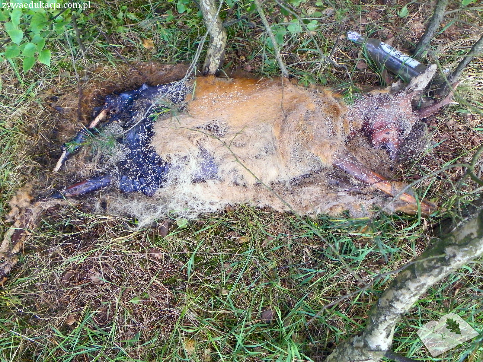 2) A western roe deer probably hit by a car. This male could only walk 20 m from the road to die in bushes.