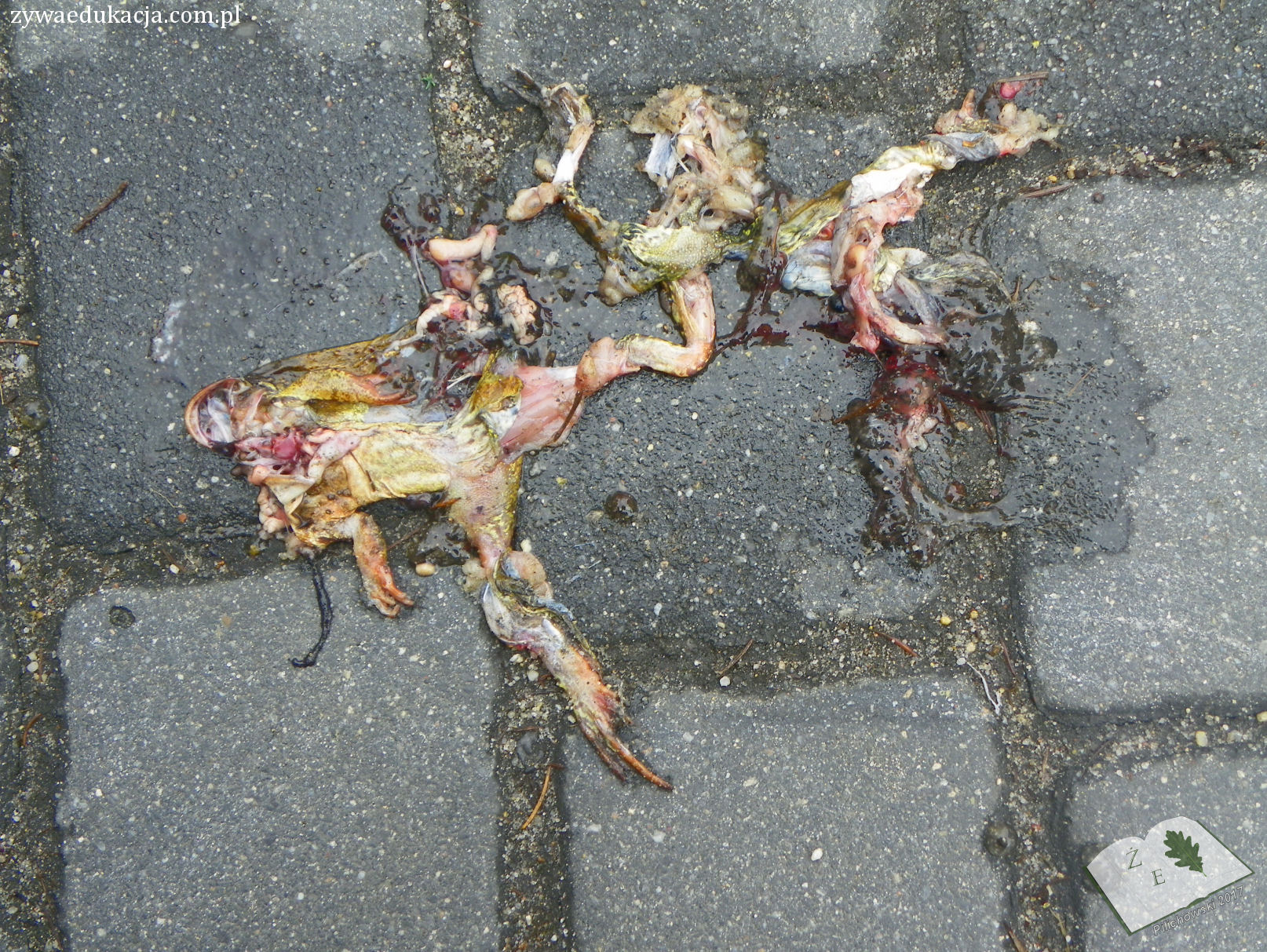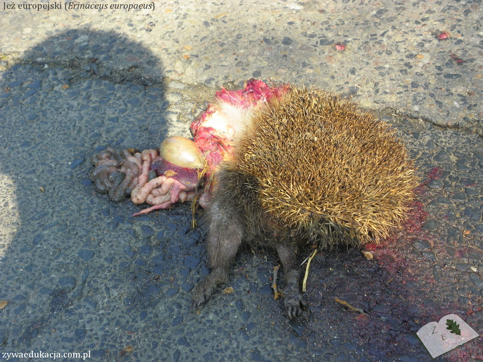 Here, I propose my own photo of freshly roadkilled hedgehog. When spring comes, it will be a common view on the Polish roads, especially in cities. Hedgehogs after hibernation will go out to find some food, while we will be driving without thinking about them or looking on the road if there is anybody who is going to cross our route. The trouble with the habitat fragmentation is a huge consequence of building so dense net of roads, usually without securing the safety of migrating animals. When the hedgehogs will be dieing on roads, so will lots of amphibians which according to their instincts will be looking for water ponds to mate.