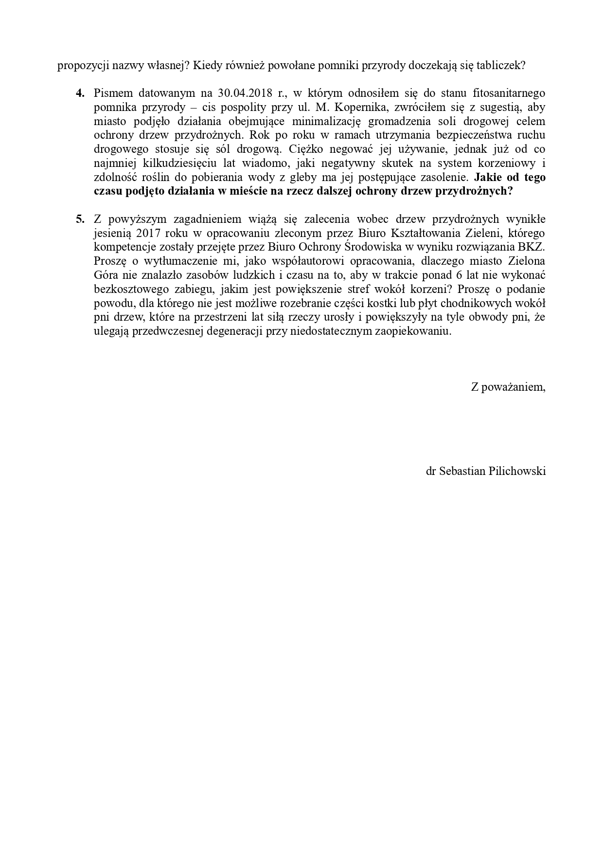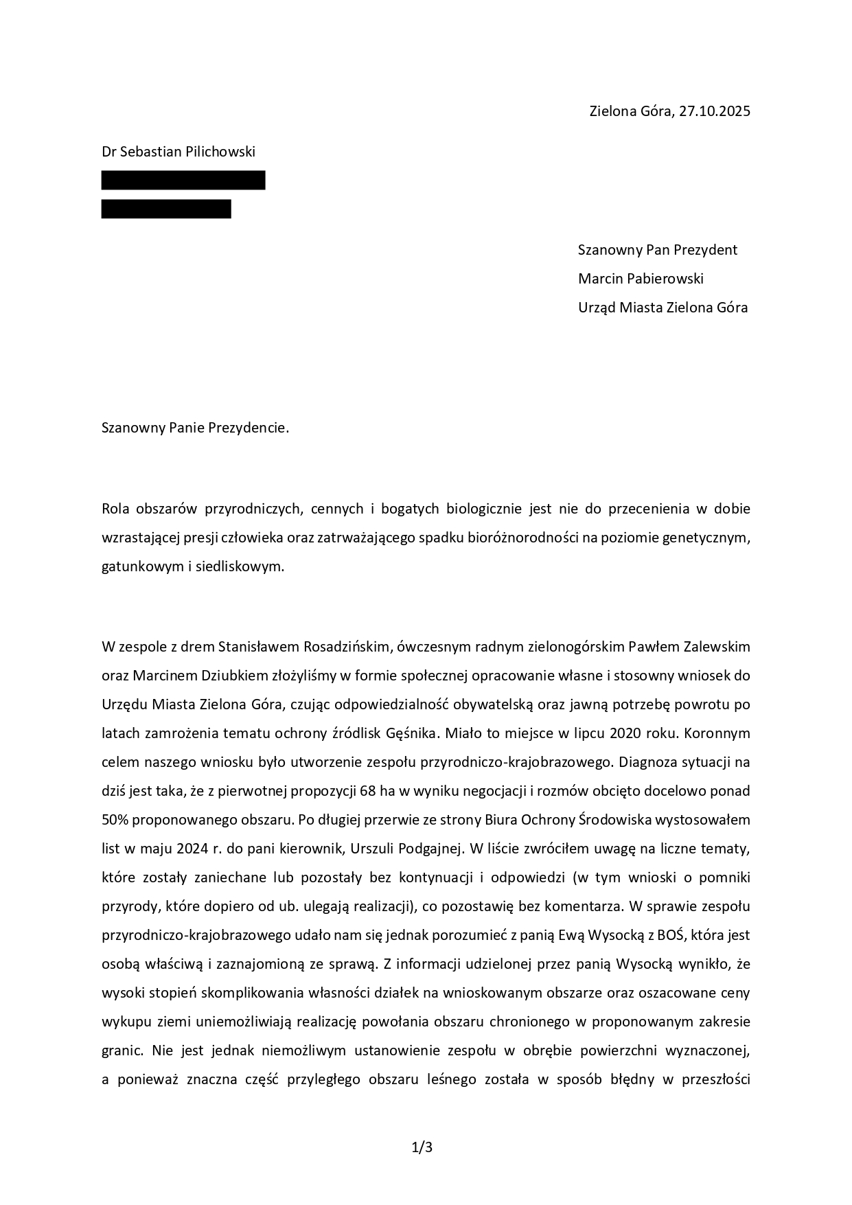 2) pismo z dnia 27.10.2025 r. skierowane do prezydenta Zielonej Góry - do dziś bez odpowiedzi z jego strony lub kogoś wskazanego.