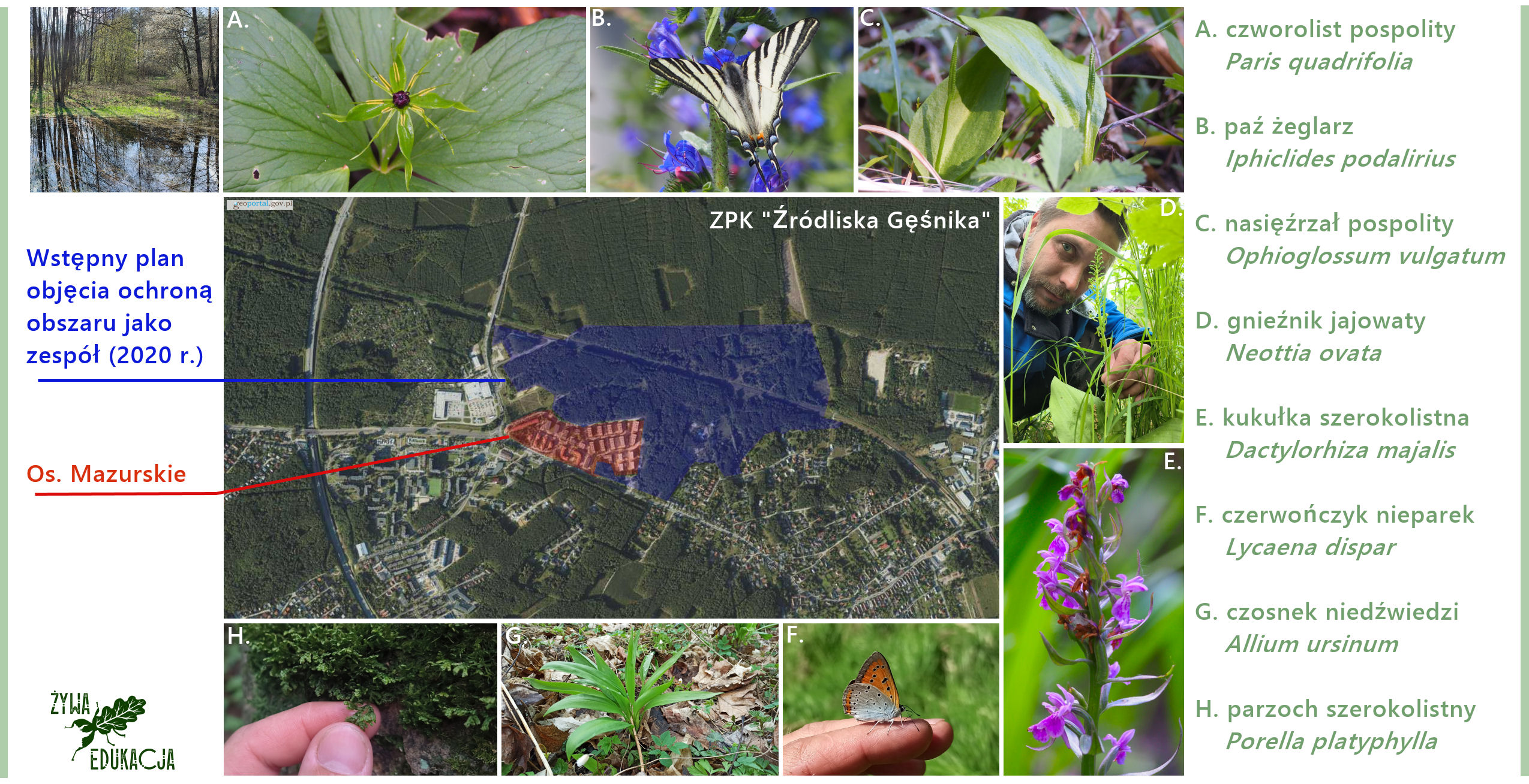 Część cennych gatunków występujących na projektowanym zespole przyrodniczo-krajobrazowym "Źródliska Gęśnika":