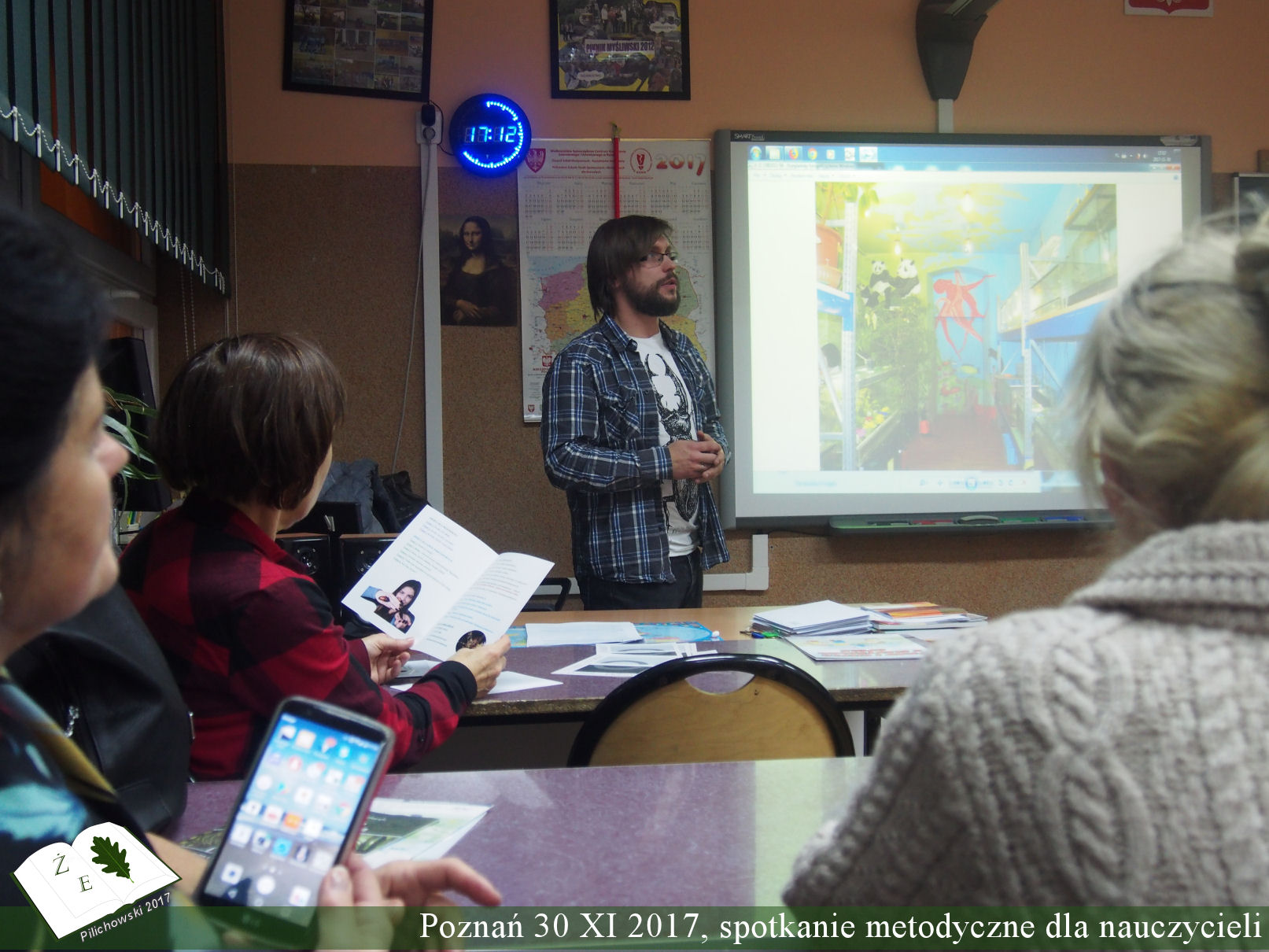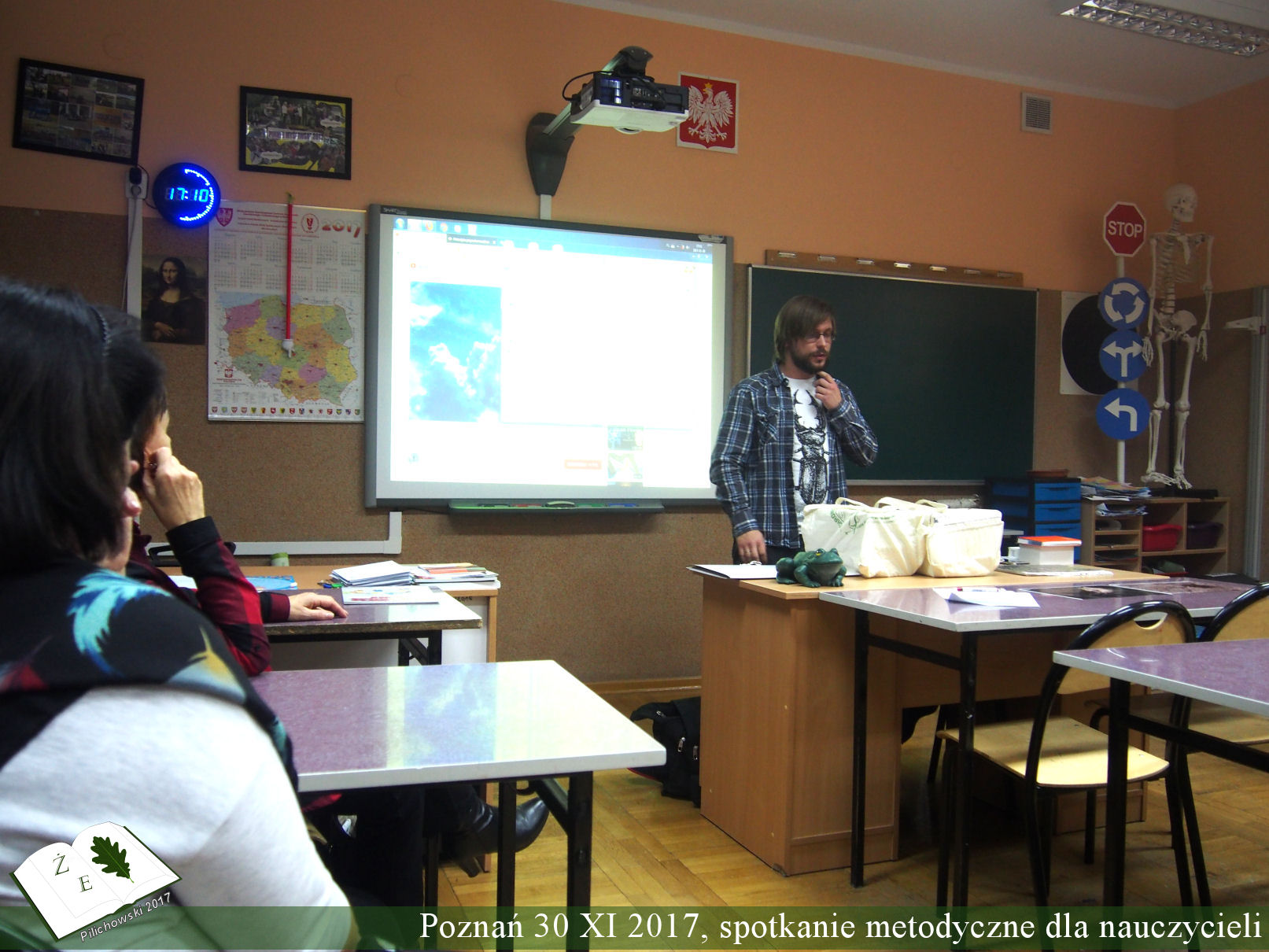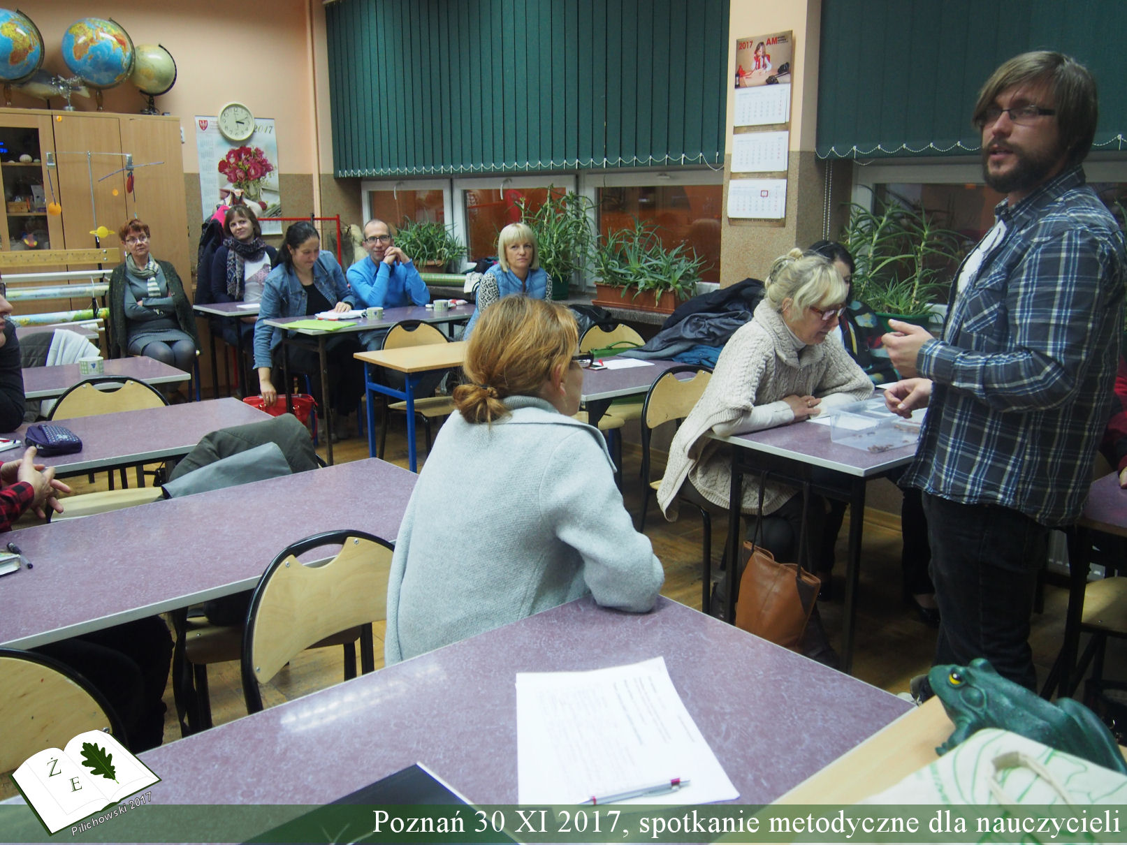 30 listopada 2017 roku odbyło się spotkanie metodyczne dla nauczycieli przyrody i biologii oraz metodyków, na które zostałem zaproszony. Z wielką przyjemnością opowiedziałem i pokazałem, jak prowadzę zajęcia, na co zwracam uwagę, gdzie dostrzegam pewne problemy. Bazując na swoich doświadczeniach zarówno opartych na prowadzonej działalności, ale i pracy w ogrodzie botanicznym jako edukator, w szkole podstawowej jako nauczyciel przyrody oraz w dużej mierze bazując na wszystkich świetnych wydarzeniach związanych z rozwiązaną już pracownią muzealno-hodowlaną przy Wydziale Nauk Biologicznych UZ, podzieliłem się swoimi spostrzeżeniami. Zasygnalizowałem problem z prowadzeniem obserwacji przez dzieci oraz co w pierwszej kolejności dostrzegają dzieci myśląc o owadach. Uwypukliłem z odwiecznym chyba problemem z odróżnianiem "konika polnego" od pasikonika i świerszcza oraz pszczoły, trzmiela, osy i szerszenia. Na zakończenie nauczyciele z wielką chęcią zapoznali się z żywymi owadami, bez większych oporów biorąc na ręce bezkręgowce.