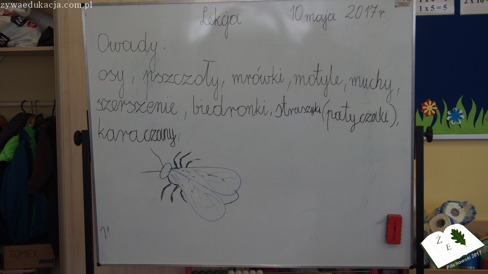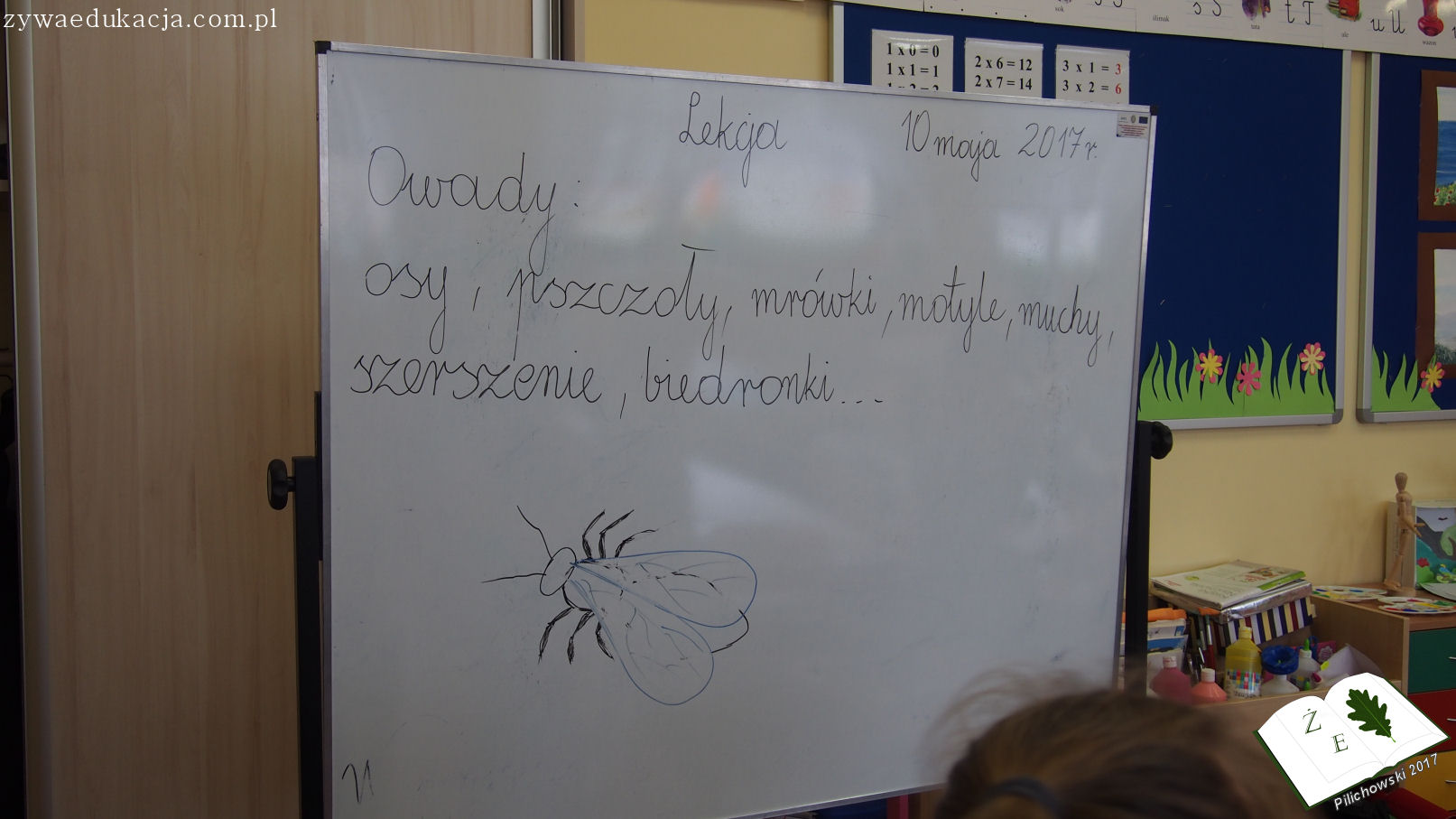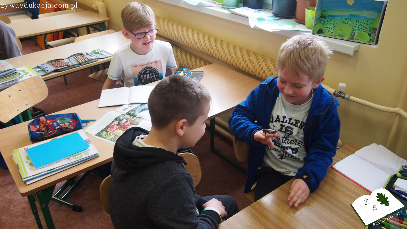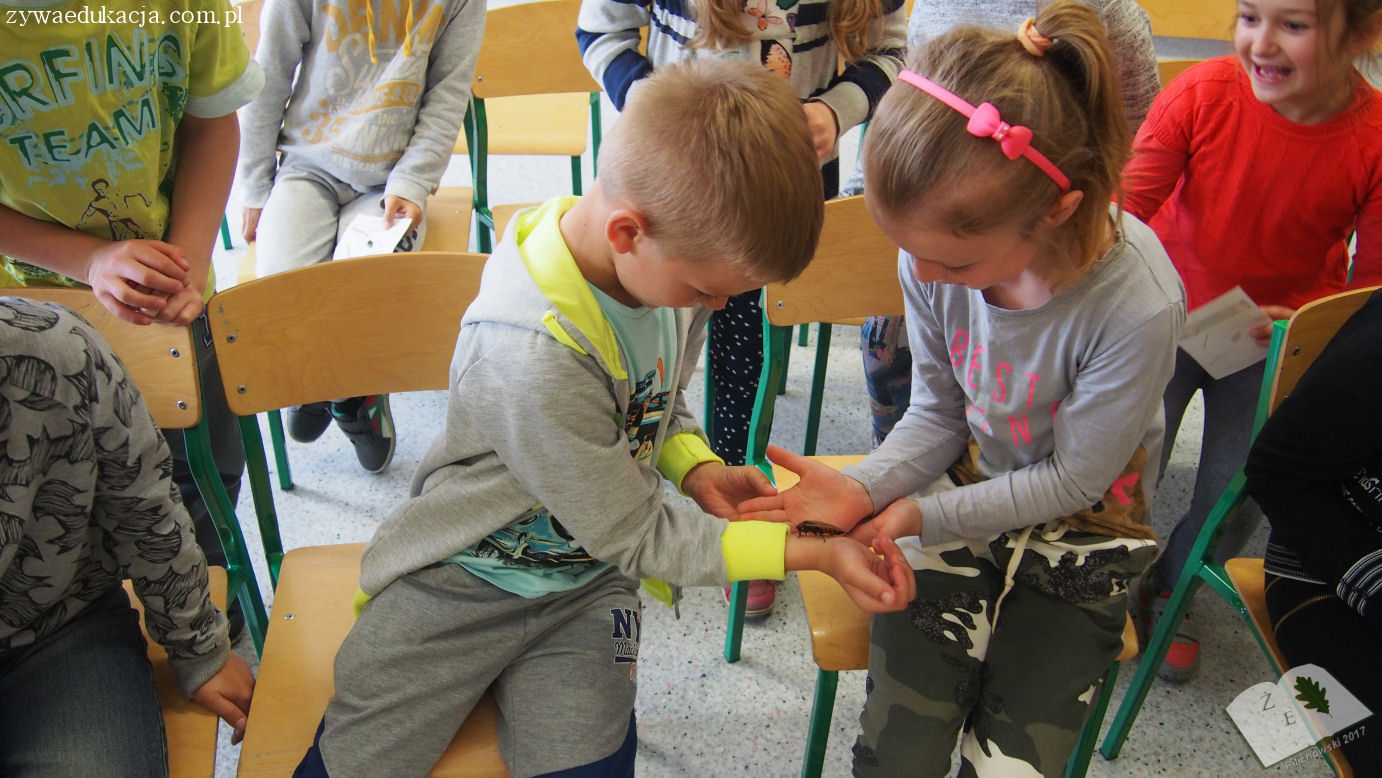 Piątek był dość pracowitym dniem. Niby weekend tuż tuz, ale swoje trzeba jeszcze zrobić. Choć praca wymagająca sił i głosu, to zarazem przyjemna - dwie grupy przedszkolne i trzy szkolne, czyli łącznie pięć grup dzieci i uczniów do pobudzenia wrażliwości na przyrodę. Temat główny? Owady. Ich rola, różnorodność, no i oczywiście część pokazowa, czyli bezpośredni kontakt z żywymi, dość sporymi niekiedy okazami owadów. Wielu skusiło się na wzięcie na ręce niektórych karaczanów i/lub straszyków, a co cieszy chyba najbardziej, że znaleźli się i tacy, którzy przełamali strach i obrzydzenie :)