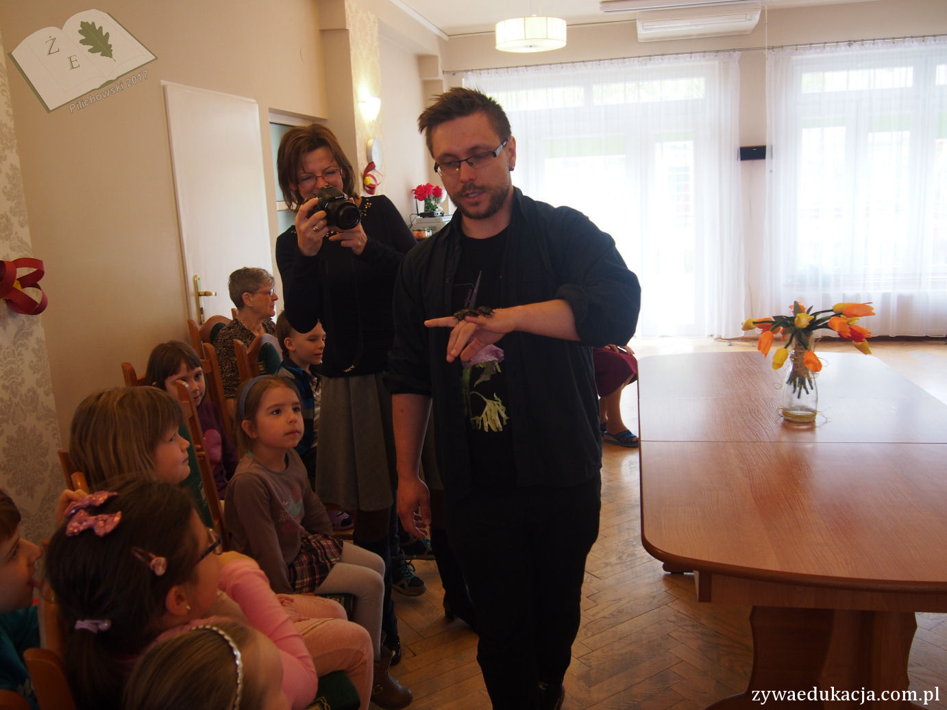 21. dzień kwietnia 2017, dzień przed Międzynarodowym Dniem Matki Ziemi, był nieco pracowity. Zaraz po wizycie u seniorów w Domu Dziennym "WIGOR-Senior" udałem się do zielonogórskiej podstawówki, gdzie opowiedziałem dzieciom nieco o owadach i pokazałem różne egzotyczne gatunki. Cieszy szczególnie, że dzieci odsunięte, bojące się przekonały się i pozwoliły owadom pochodzić po ręce lub nodze :)
