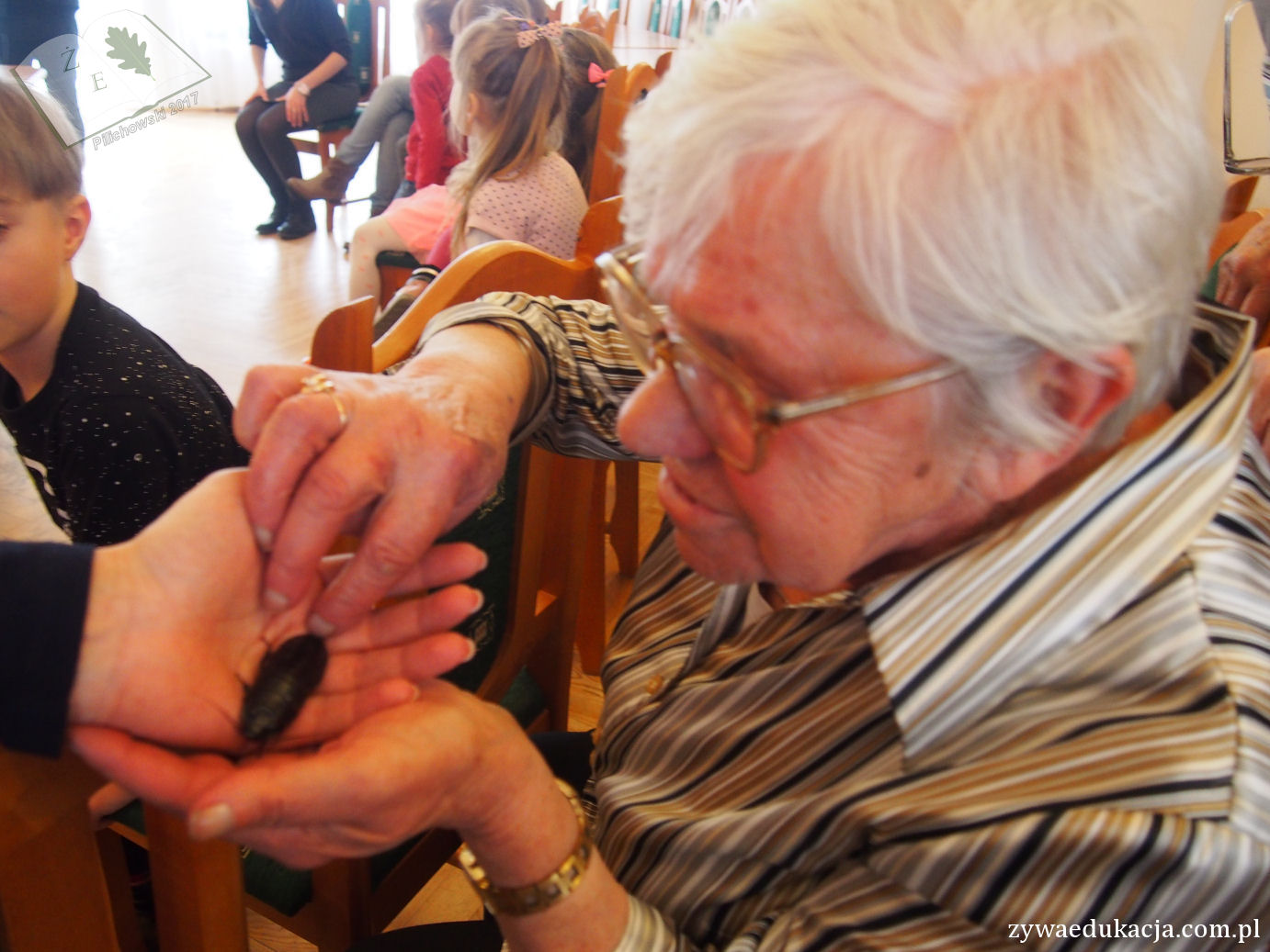Na początek pobudzenie zainteresowania karaczanami madagaskarskimi, które chyba zawsze robią pozytywny szał. I zrobiły, i u najmłodszych, i u najstarszych, ale jak na me oko i u opiekunów i pracowników Domu ;) A potem nadeszła opowieść o ptakach, ich problemach z nami (jak i naszych z nimi), prawidłowym rozmieszczaniu budek lęgowych oraz karmników. I tym razem wszystko przebiegło w baaardzo pozytywnej atmosferze ;)