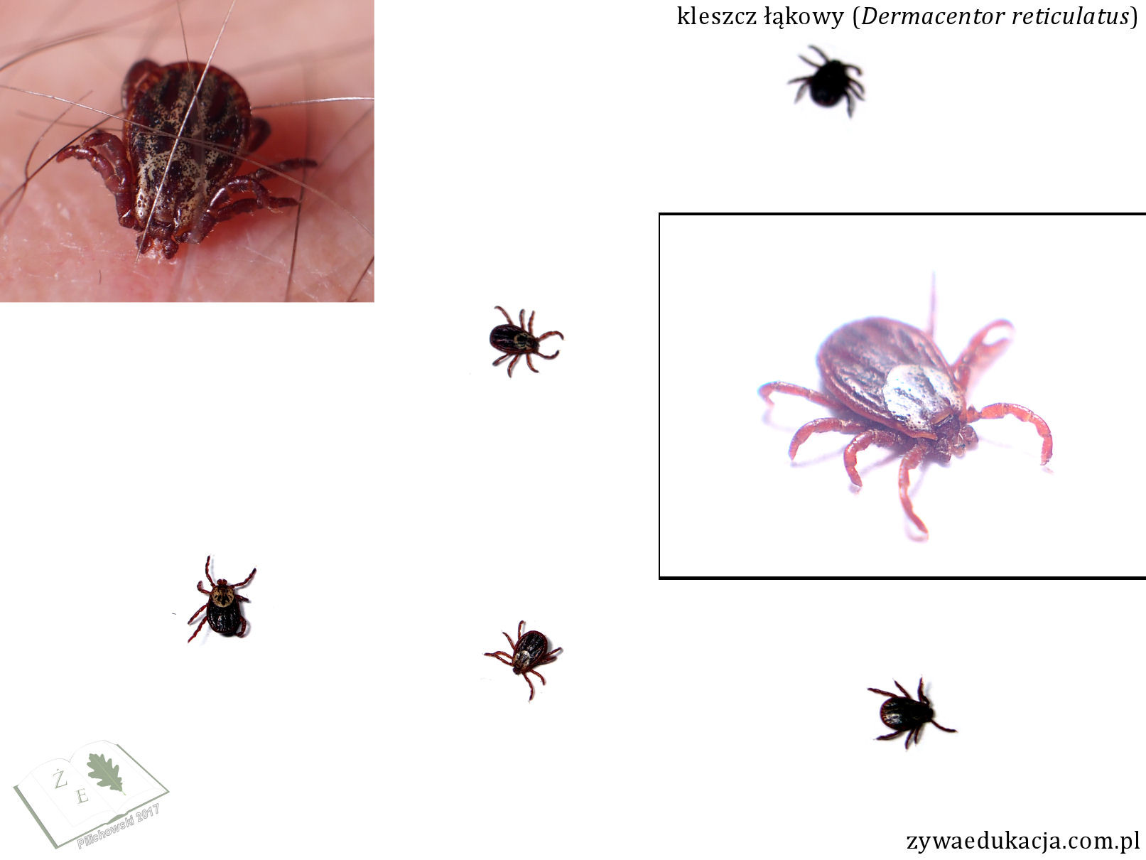 Pięć kleszcze łąkowych (z czego trzy na psie) złapane dziś przy Odrze za Wysokimi k. Zielonej Góry.