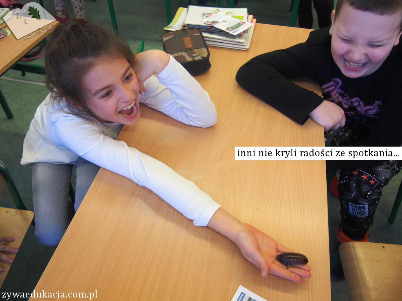 Po roku czasu znów się spotkaliśmy w tym samym gronie. Tym razem poruszyliśmy nieco inny temat niż kwestie bioróżnorodności owadów, a mianowicie strach przed zwierzętami. Czy strach jest dobry? Jakich zwierząt boją się dzieci? Dlaczego? Czy jest to uzasadnione? Czy warto temu przeciwdziałać? Kiedy kończy się odwaga, a zaczyna głupota? ;)