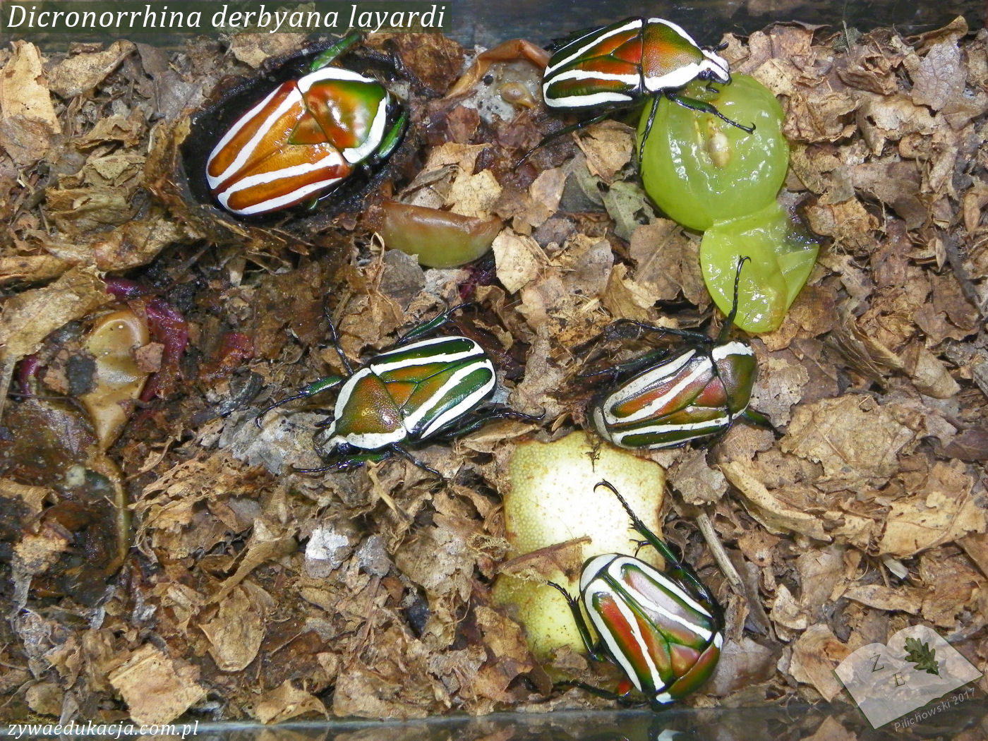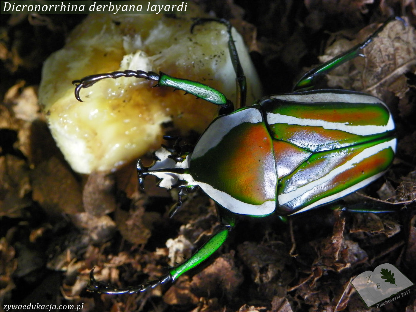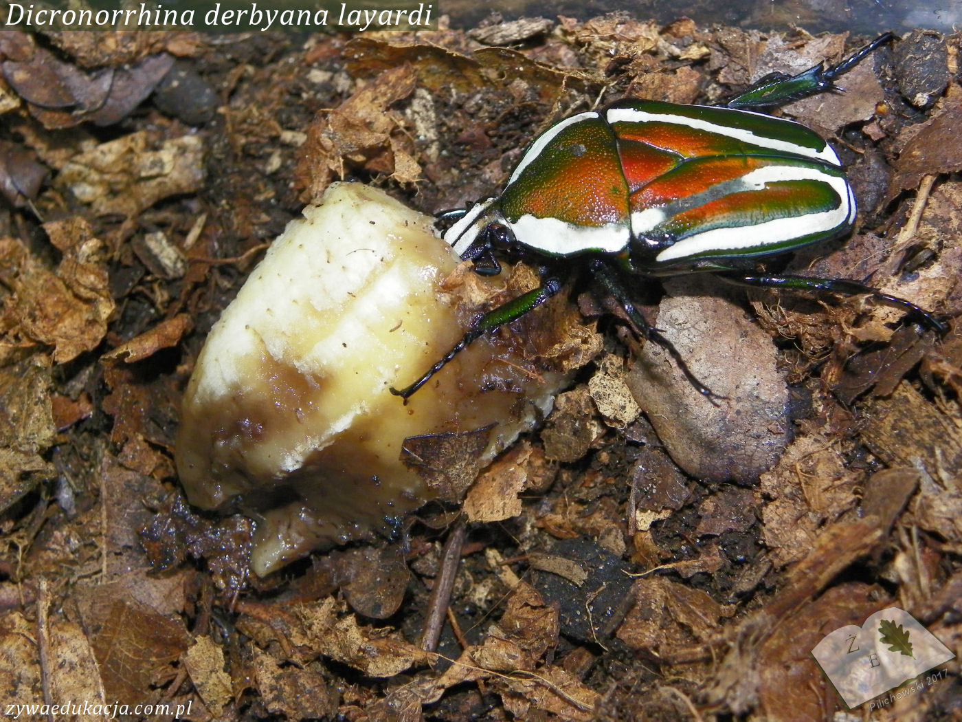 Pokarm: pędraki: rozkładające się liście dębu, buka (należy przygotować wcześniej podłoże), można uzupełnić dietę o okazyjną podaż marchwi, jabłka. Dorosłe (imagines): słodkie owoce, cytrusy, kwiaty roślin powszechnie uważanych za nietrujące (forsycja, mniszek, drzew owocowych) itd. W naturze pędraki żywią się rozkładającą się materią roślinną, w tym próchnem. Imagines chętnie latają i spijają soki z drzew, pożywiają się nektarem, pyłkiem i słodkimi owocami.