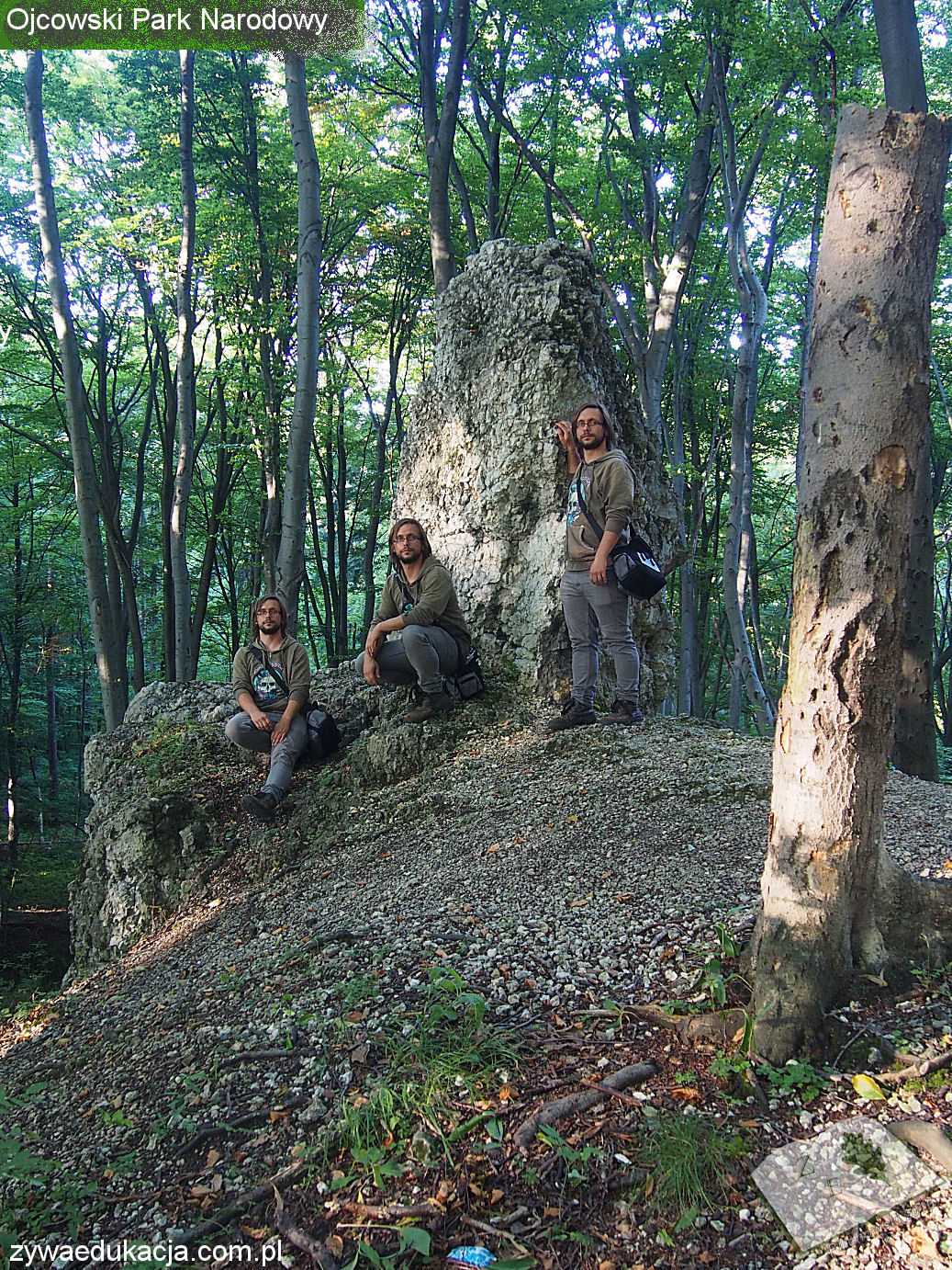 Natomiast jako osobliwość turystyczną ujmę Buk Wł. Szafera. Gdy zobaczyłem w Ojcowie na planszy z mapą, iż na południowym zachodzie Parku znajduje się pomnik Buk Szafera, od razu zapragnąłem go zobaczyć. Snułem wizje, jak on może wyglądać, jaki musi być wspaniały. Wszak to Buk Szafera! Atak na ten punkt na mapie został zaplanowany na dzień następny. I tu pojawia się pewien już niepokój. Spróbujcie wygooglać Buk Szafera. Praktycznie zero. Ktoś na blogu dotarł do buków i sobie wybrał jednego jako buka Szafera. Inny blog z kamieniem, nazwanym na cześć wielkiego botanika Bukiem Szafera. Koniec końców, po kilku godzinach morderczego terenu i zbioru materiału badawczego, udałem się w kierunku pomnika. Gdy dotarłem na miejsce ujrzałem rzeczywiście ciekawą skałę wystającą u szczytu Wąwozu Korytania. Dziwi brak oznakowania. Zero tabliczki, informacji. Nieopodal znajduje się brama Parku (pierwsze zdjęcie w tej sekcji) i mapa, na której również jest ów buk naniesiony. Jak to jest, że buk jest na mapach-planszach i mapie kupnej, a nie ma go na stronie parku, czy dostępnych w internecie materiałach o Władysławie Szaferze? Taki buk również nie widnieje w Geoserwisie, czy Centralnym Rejestrze Form Ochrony Przyrody... Czy to nie dziwne, że tak istotny element stanowi taką zagadkę? Człek aż się troi od tego...