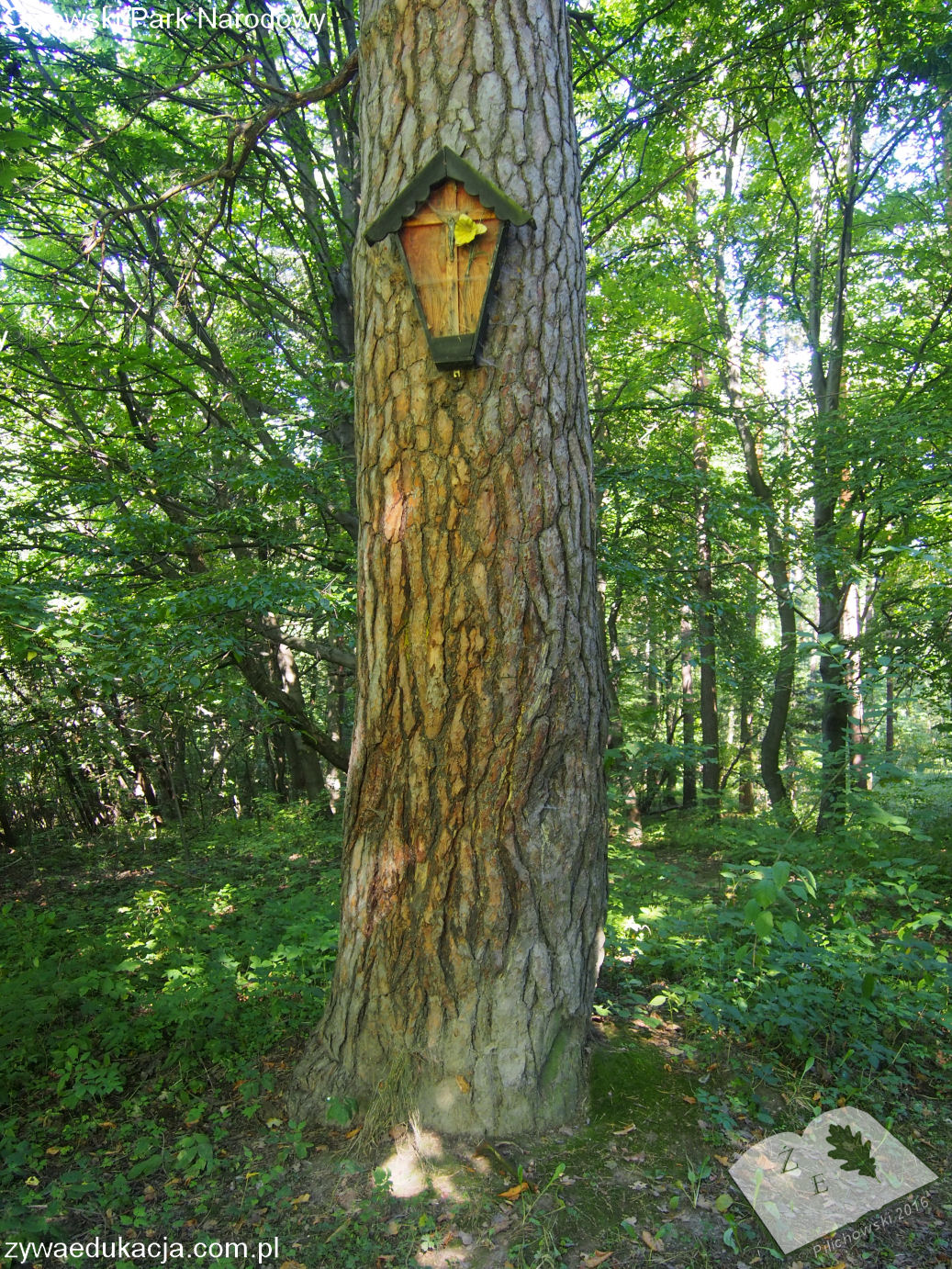 W tej samej części Parku znajdziemy tabliczkę z informacją, jak poniżej. Generalnie w całym Parku powszechne są kapliczki, niezależnie czy w lesie, czy wśród zabudowań.