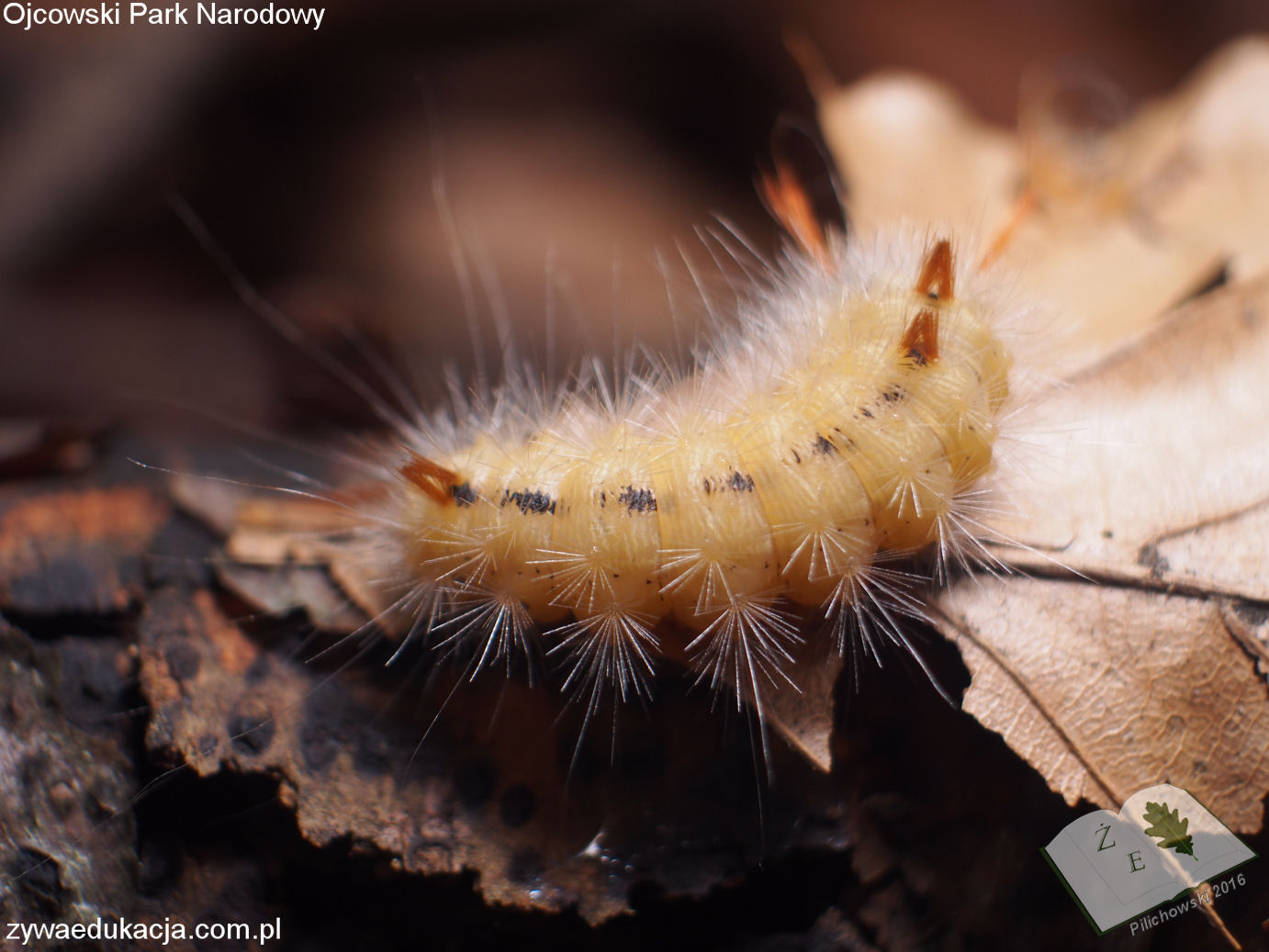 Gąsienica połacicy leszczynówki (Colocasia coryli) (Noctuidae; sówkowate); zobacz galerię gąsienic (kliknij):