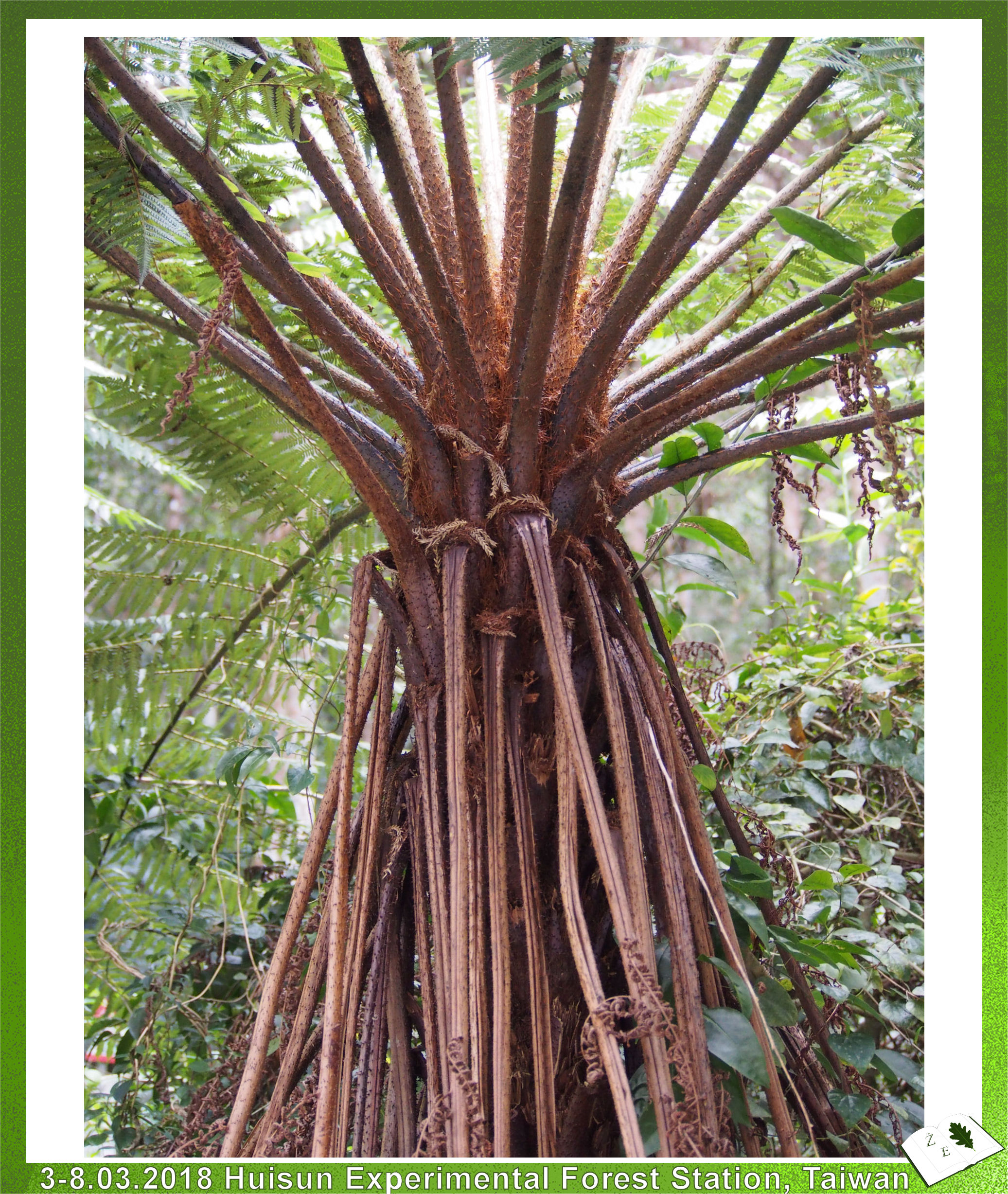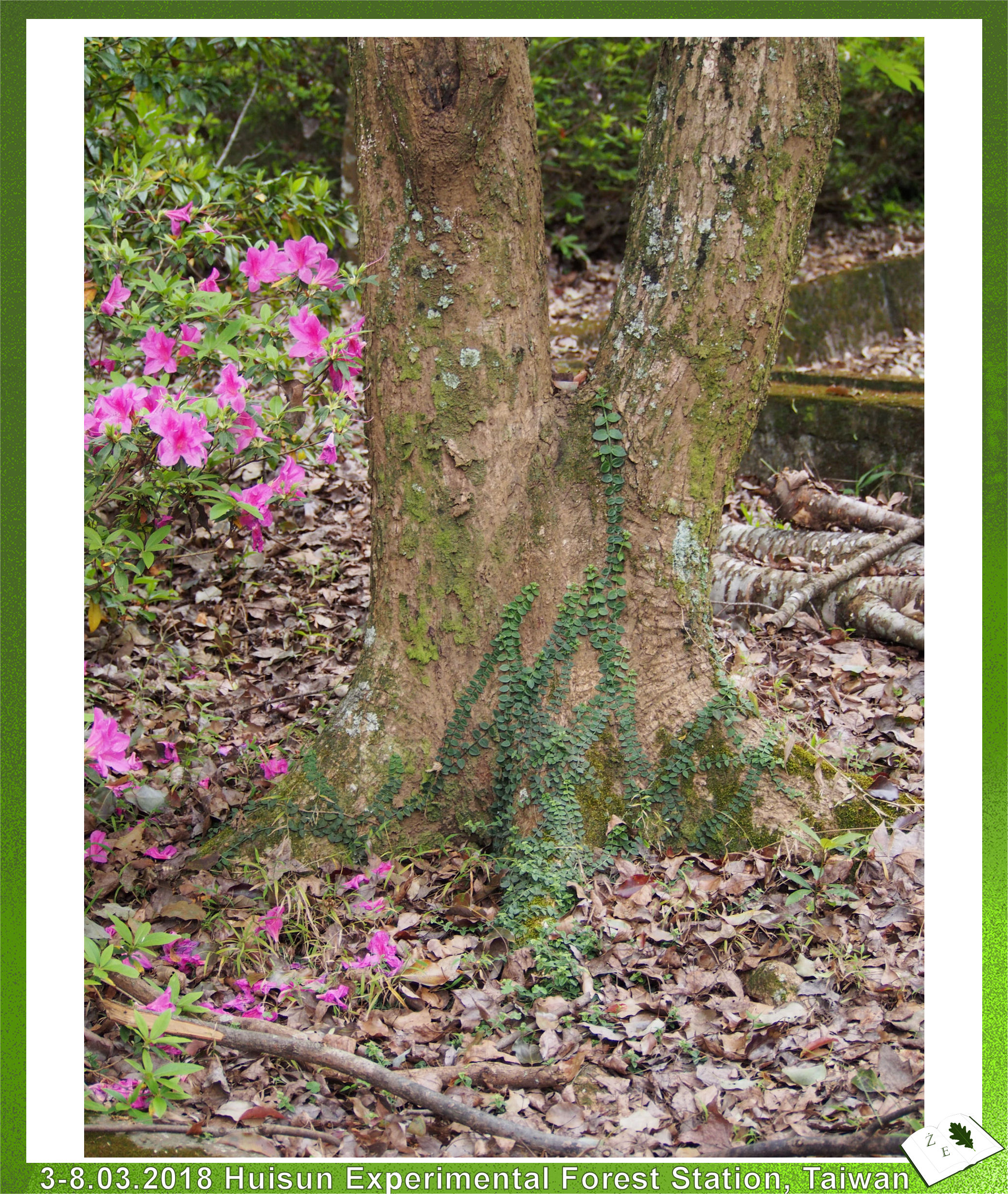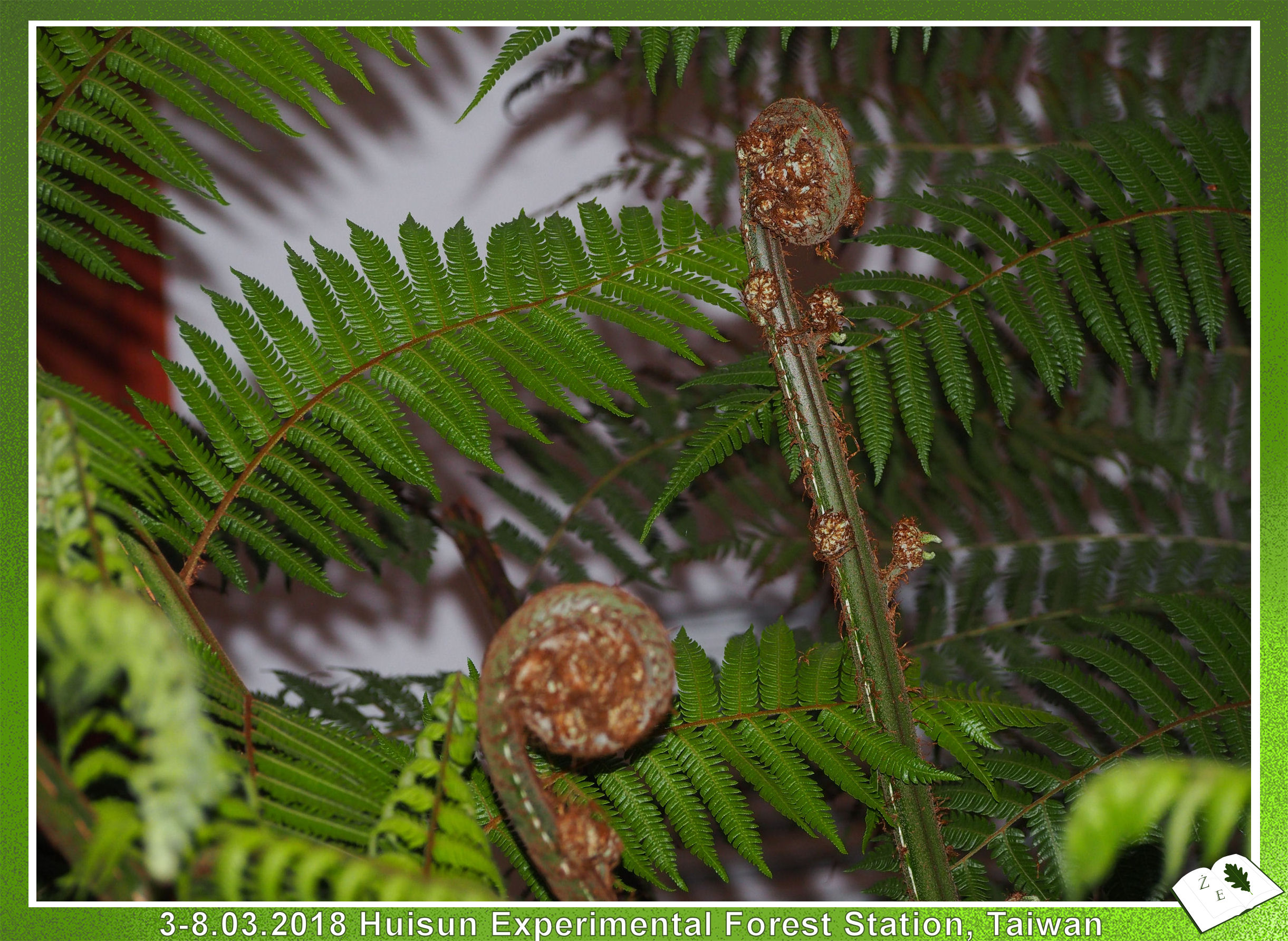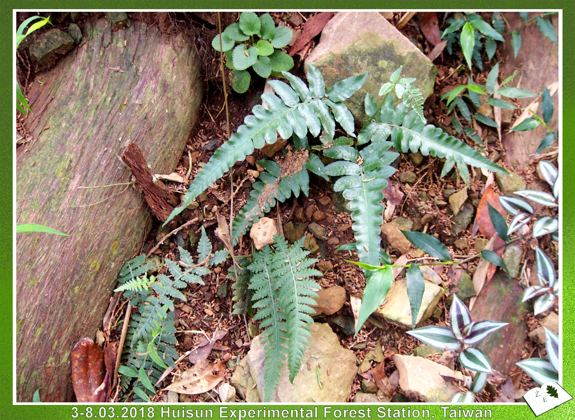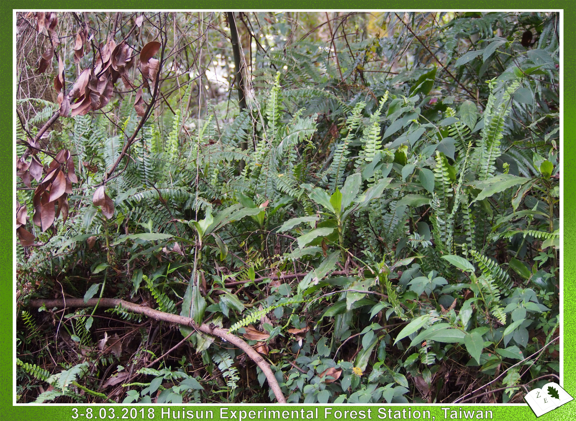 Na Tajwanie znajduje się ponad 4200 nazwanych gatunków roślin, z czego jedna czwarta to gatunki endemiczne, więc występujące jedynie na Tajwanie. W łacińskich nazwach licznych roślin znajdziemy drugi człon gatunkowy typu "formosana". Formosa to nazwa, którą wyspie nadali Portugalczycy (formosa - piękna wyspa). Niestety jak to z endemitami bywa, wiele z nich to gatunki narażone na lub zagrożone wyginięciem. Początek wielkiego skoku rozwoju gospodarczego Tajwanu przyniósł rodzimej bioróżnorodności wiele złego, ale Tajwańczycy w porę się otrząsnęli i zauważyli, że nie można bezkrytycznie niszczyć środowiska. Powołano Endemic Species Research Institute (Instytut badań nad gatunkami endemicznymi). W kilku prowincjach Chin oraz właśnie na Tajwanie spotkać można monotypowy gatunek drzewa - tajwanię szydlicopodobną (Taiwania cryptomerioides). Nazwa gatunkowa pochodzi od pędów, które swym wyglądem przypominają szydlicę (Cryptomeria). Marcowe przedwiośnie (wyglądające jak nasza wiosna) przyniosło także obfite kwitnienie azalii. Część tajwańskich czereśni (Prunus campanulata) kończyła kwitnąć lub właśnie zaczynała. Jako miłośnika obrazkowatych (rodzina Araceae) uradowały mnie rosnące wszędzie alokazje (Alocasia odora), które asynchronicznie kwitły i owocowały (podobna ekologia do drakunkulusa - klkinij), ponadto zroślichy (Syngonium sp.) porastające dach niskiego budynku przy centrum konferencyjnym i wiele innych semiepifitów (rzekome epifity - rośliny porastające pnie drzew, ale na stałe zakorzeniowe w glebie). Z wielkim zaciekawieniem przyglądałem się dnu lasu. Paprocie, widliczki (Selaginella spp.), trzykrotki (Tradescantia zebrina), rozmaite mchy... Zupełnie nowy dla mnie rodzaj paproci (Vittaria, rodzina Pteridaceae, do niedawna Vittariaceae - systematyka jak zawsze zmienna, część gatunków została przeniesiona do innych rodzajów) - które wyglądają jak trawa o wąskich liściach, wyrastające ze skarp. Paprocie są wszędzie. Na drzewach, w runie, podszycie, na skarpach, na dachach, w murach, na murach pełzają dawalie... Bogactwo paproci Huisun podsumowuje książka: