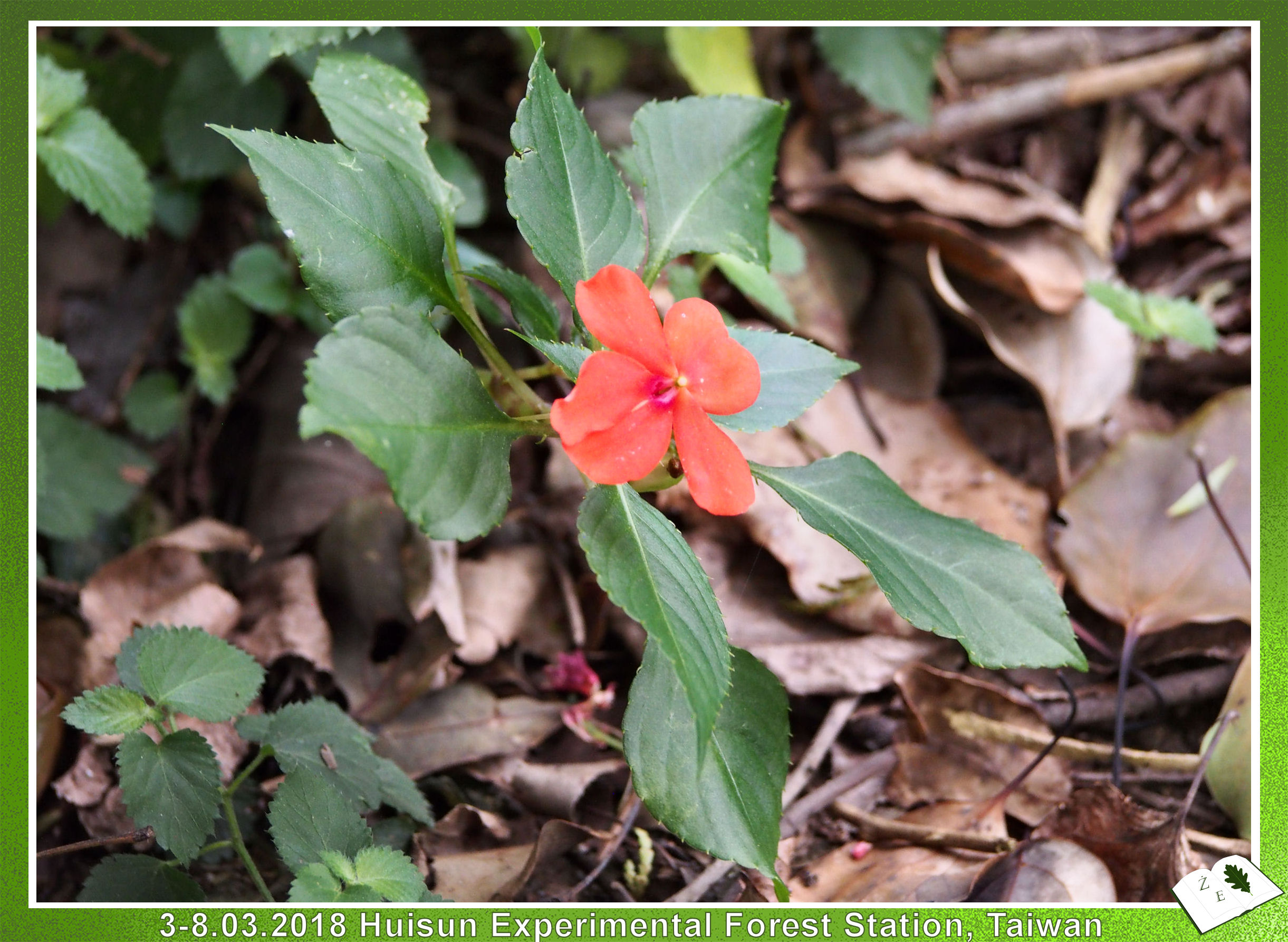 W samym Huisun zaś, do którego przyjeżdżają turyści zza granicy, jak również z samego Tajwanu, nie prowadzi się gospodarki leśnej, a nielegalne pozyskiwanie drewna jest surowo karane. Flora Tajwanu jest bogata, aczkolwiek ciepły klimat pozwala na uprawę czy "wprowadzanie się" gatunków obcych. Zatem i tu mamy problem z roślinami inwazyjnymi, np. w lesie spotkać można gatunki niecierpków (Impatiens spp.) obcych dla Tajwanu. Przy samym centrum konferencyjnym widziałem babkę, wyglądającą jak babka większa (Plantago major), znaną nam doskonale. Podobnie przykuł mą uwagę owocujący tasznik, zupełnie podobny do naszego tasznika pospolitego (Capsella bursa-pastoris). Nie byłoby to dziwne, gdyby obie rośliny okazały się właśnie tymi znanymi z Europy, bowiem oba gatunki podbiły już praktycznie cały świat.