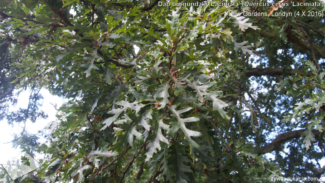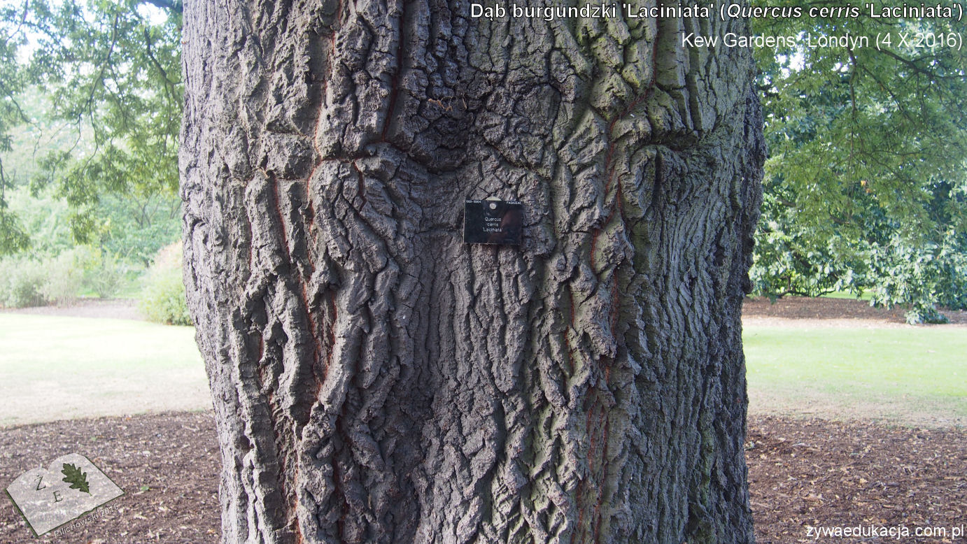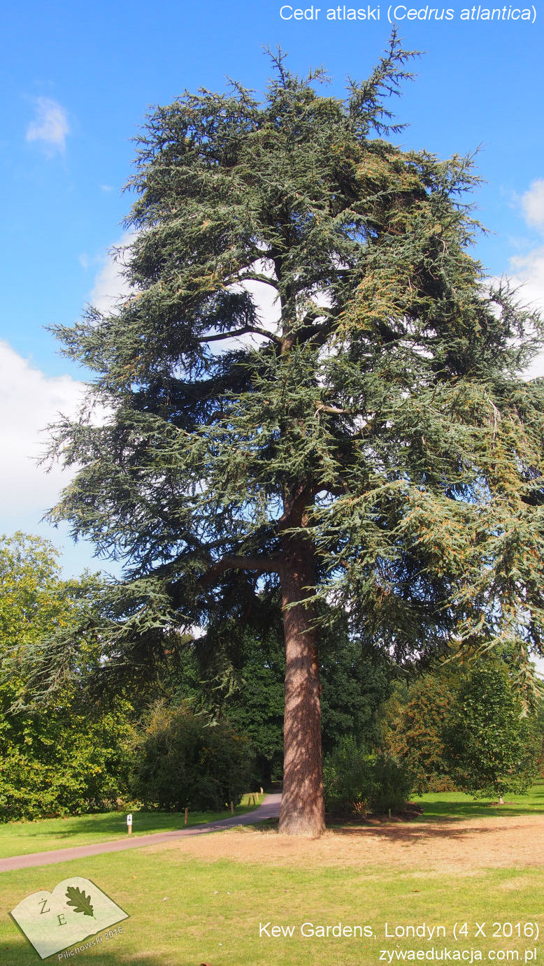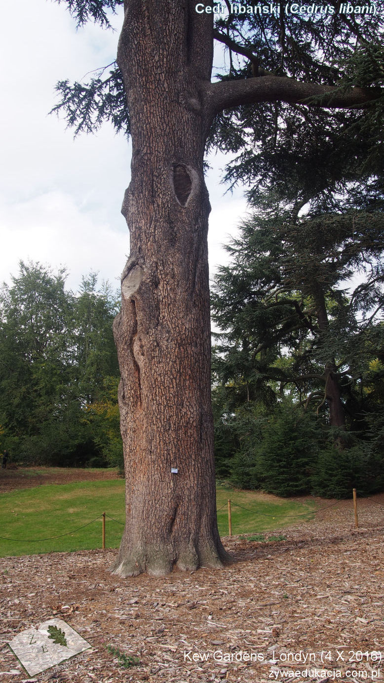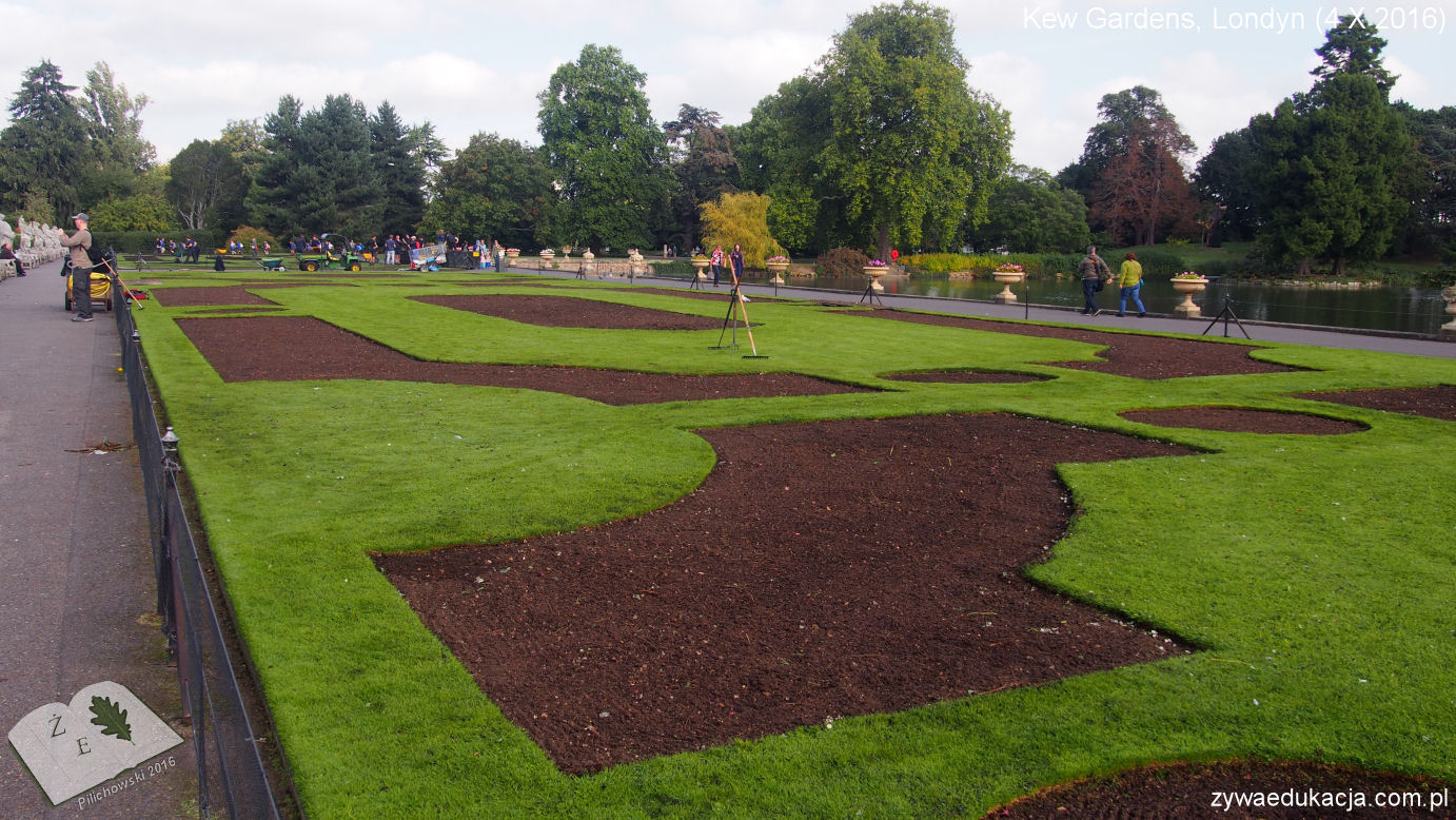 4 października 2016 moja stopa, ba nawet obie, przekroczyła próg królewskich ogrodów Kew Gardens w Londynie. Choć pobyt w Londynie trwał jeden dzień, a w Kew byłem jedynie kilka godzin, to moje wewnętrzne ja raduje się tym, co zobaczyłem. Miła obsługa na wstępie, mapa Ogrodów, masa ludzi przygotowujących poletka na przyszłosezonowe rabaty i zabezpieczająca okazałe drzewa, rozsypując torf wokół bryły korzeniowej. No i szklarnia... A dalej wspaniałe dęby, w tym dwa stanowiące dziedzictwo Kew Gardens - dąb kasztanolistny Quercus castaneifolia, posadzony w 1846 roku oraz dąb Lucombe'a Quercus x hispanica 'Lucombeana', posadzony w 1773 roku. Ten ostatni to mieszaniec o cechach dębu burgundzkiego Q. cerris oraz korkowego Q. suber, odkryty przez Williama Lucombe'a w 1765 roku. Tabliczka informacyjna podaje, że najprawdopodobniej niniejsze drzewo to jedno z pierwszych sadzonek Lucombe'a. Sam osobnik rosnący w Kew Gardens to potwornej wielkości i o potężnej koronie drzewo, o ciekawie skierowanych ku ziemi gałęziach, w pełni ulistnionych. Oczywiście poza nimi znajdziemy tam liczne dęby od szypułkowego Q. robur, bezszypułkowego Q. petraea i czerwonego Q. rubra, po dąb burgundzki odmiany 'Laciniata' Q. cerris 'Laciniata', korkowy Q. suber i inne. Niemniej imponujące są potężne cedry atlaskie Cedrus atlantica, w tym odmiana sina 'Glauca', cedr libański C. libani i himalajski C. deodara. Liczne sosny, ciekawie wyglądająca stara surmia bignoniowata Catalpa bignonioides, owocujące liczne i często spore ostrokrzew Ilex spp., kwitnące w wielu miejscach zimowity Colchicum i wiele, wiele by jeszcze opowiadać. Po drodze zapoznaliśmy się z tymczasową aranżacją Flora Japonica, edukacyjnym pakietem dotyczącym owadów zapylających, szczególnie pszczół i trzmieli, a uroku dodała wiewiórka szara Scurius carolinensis, północnoamerykański gatunek gryzonia, inwazyjny na Wyspach, niosąca w pyszczku owoc kasztana jadalnego Castanea sativa.