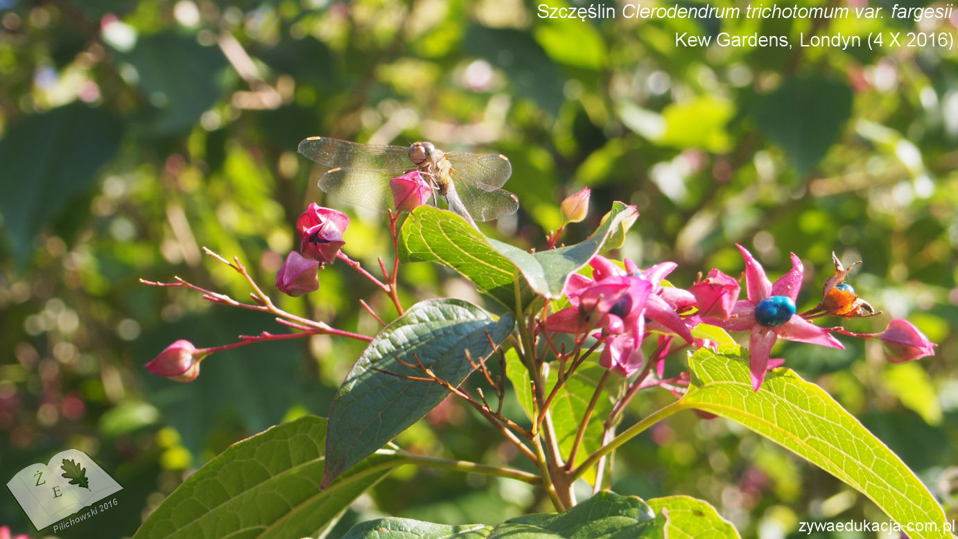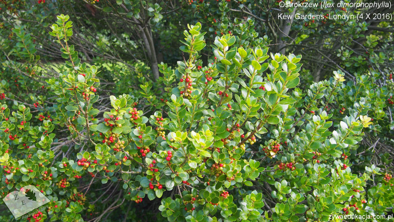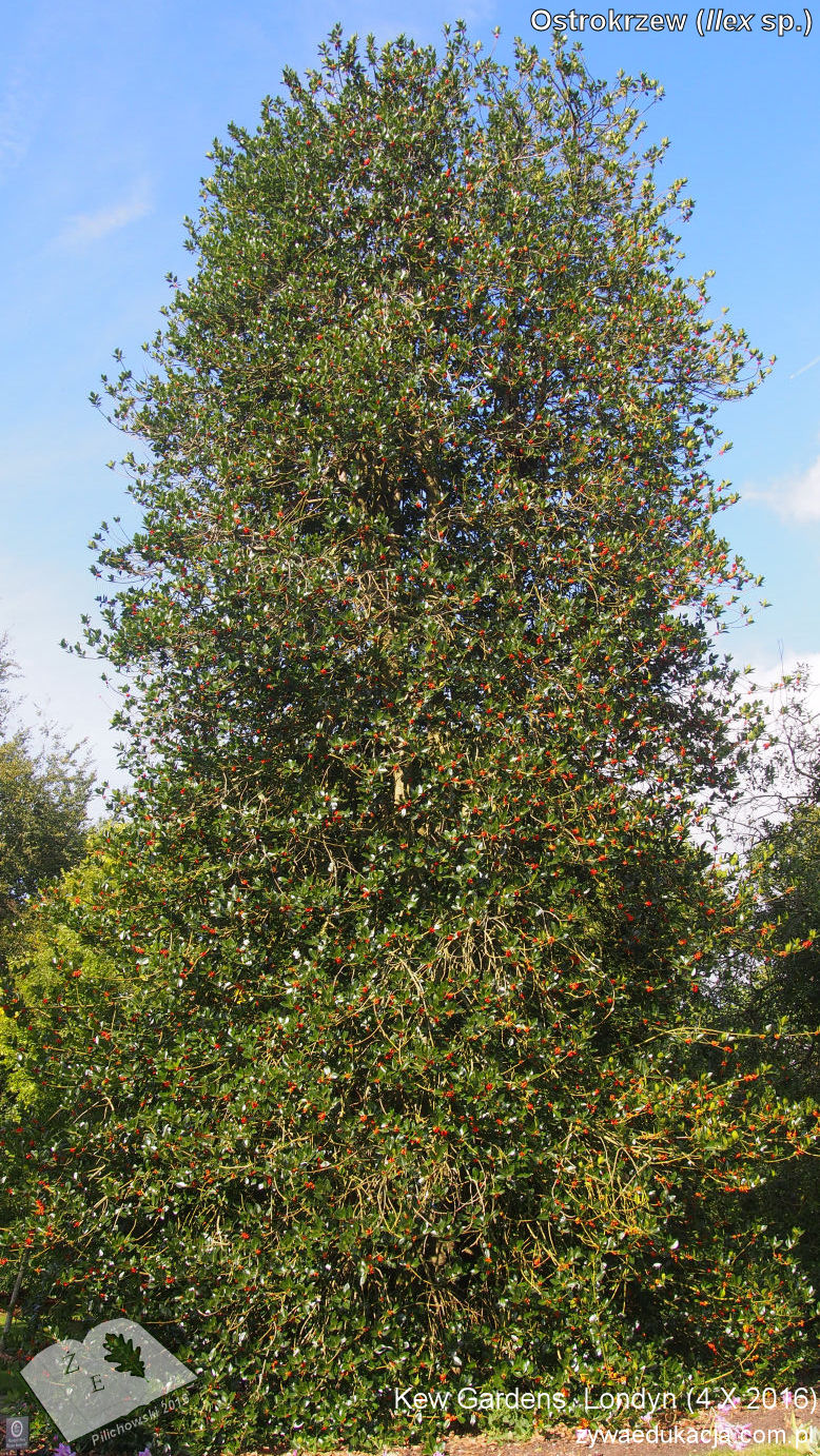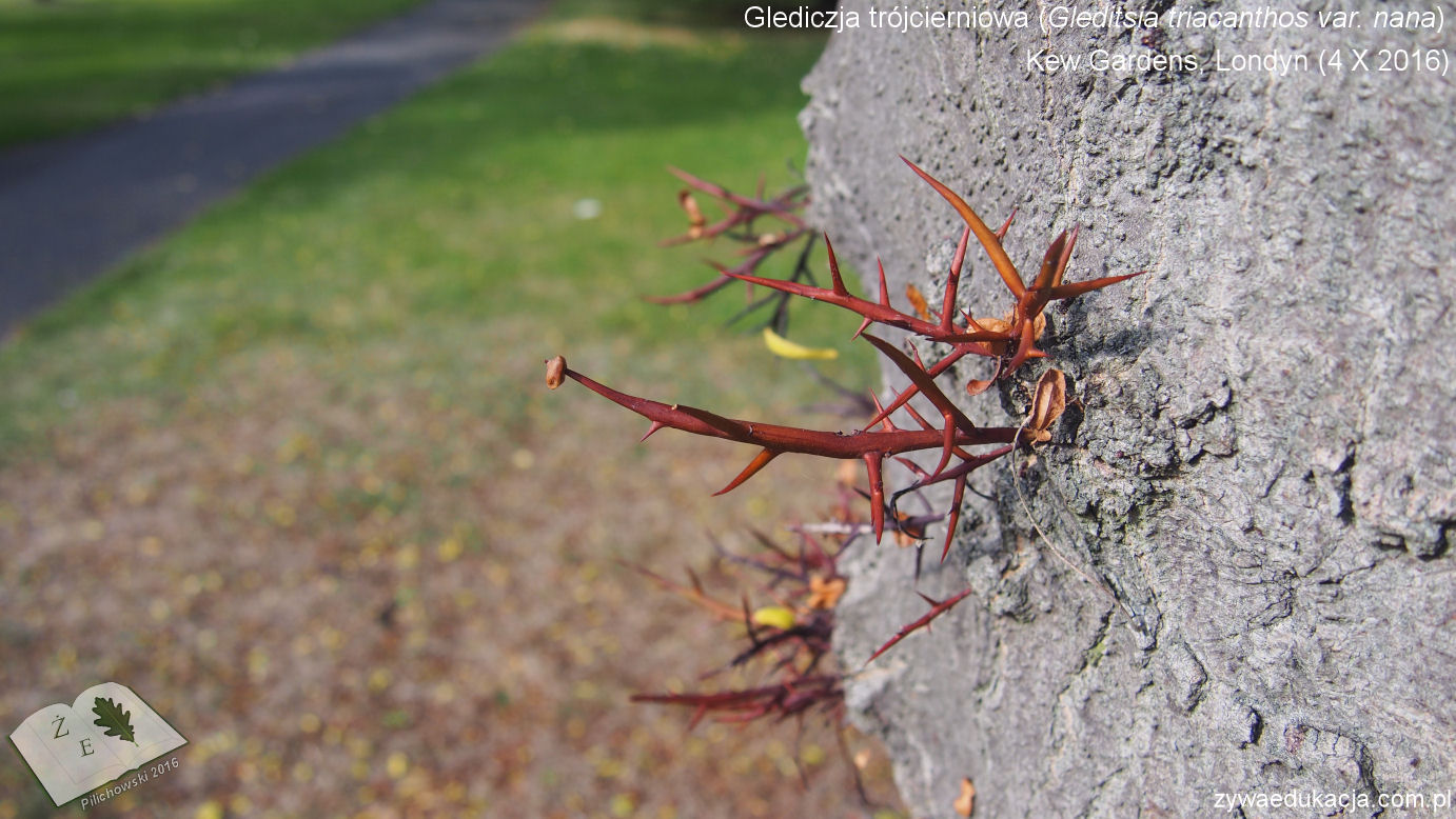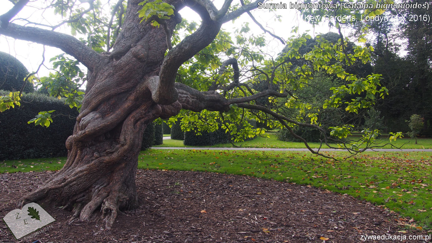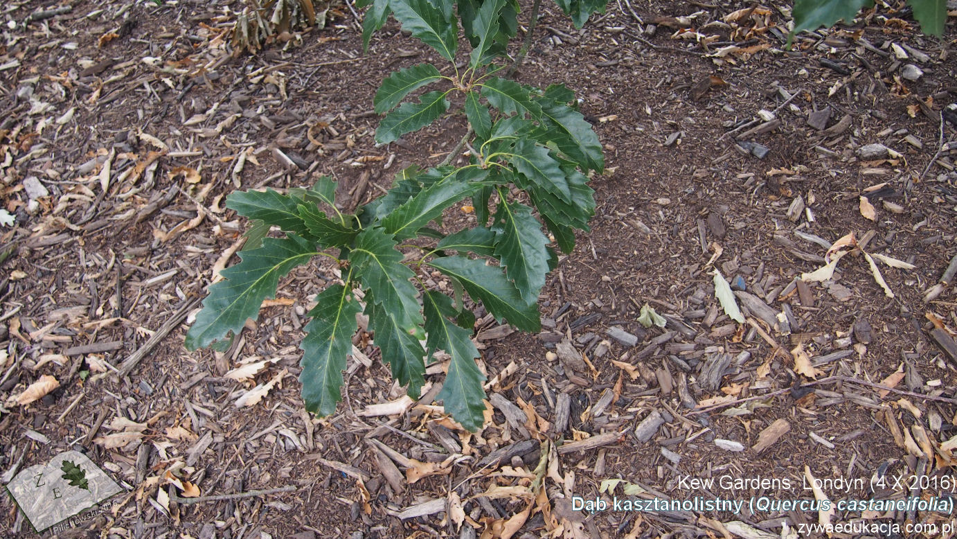 4 października 2016 moja stopa, ba nawet obie, przekroczyła próg królewskich ogrodów Kew Gardens w Londynie. Choć pobyt w Londynie trwał jeden dzień, a w Kew byłem jedynie kilka godzin, to moje wewnętrzne ja raduje się tym, co zobaczyłem. Miła obsługa na wstępie, mapa Ogrodów, masa ludzi przygotowujących poletka na przyszłosezonowe rabaty i zabezpieczająca okazałe drzewa, rozsypując torf wokół bryły korzeniowej. No i szklarnia... A dalej wspaniałe dęby, w tym dwa stanowiące dziedzictwo Kew Gardens - dąb kasztanolistny Quercus castaneifolia, posadzony w 1846 roku oraz dąb Lucombe'a Quercus x hispanica 'Lucombeana', posadzony w 1773 roku. Ten ostatni to mieszaniec o cechach dębu burgundzkiego Q. cerris oraz korkowego Q. suber, odkryty przez Williama Lucombe'a w 1765 roku. Tabliczka informacyjna podaje, że najprawdopodobniej niniejsze drzewo to jedno z pierwszych sadzonek Lucombe'a. Sam osobnik rosnący w Kew Gardens to potwornej wielkości i o potężnej koronie drzewo, o ciekawie skierowanych ku ziemi gałęziach, w pełni ulistnionych. Oczywiście poza nimi znajdziemy tam liczne dęby od szypułkowego Q. robur, bezszypułkowego Q. petraea i czerwonego Q. rubra, po dąb burgundzki odmiany 'Laciniata' Q. cerris 'Laciniata', korkowy Q. suber i inne. Niemniej imponujące są potężne cedry atlaskie Cedrus atlantica, w tym odmiana sina 'Glauca', cedr libański C. libani i himalajski C. deodara. Liczne sosny, ciekawie wyglądająca stara surmia bignoniowata Catalpa bignonioides, owocujące liczne i często spore ostrokrzew Ilex spp., kwitnące w wielu miejscach zimowity Colchicum i wiele, wiele by jeszcze opowiadać. Po drodze zapoznaliśmy się z tymczasową aranżacją Flora Japonica, edukacyjnym pakietem dotyczącym owadów zapylających, szczególnie pszczół i trzmieli, a uroku dodała wiewiórka szara Scurius carolinensis, północnoamerykański gatunek gryzonia, inwazyjny na Wyspach, niosąca w pyszczku owoc kasztana jadalnego Castanea sativa.