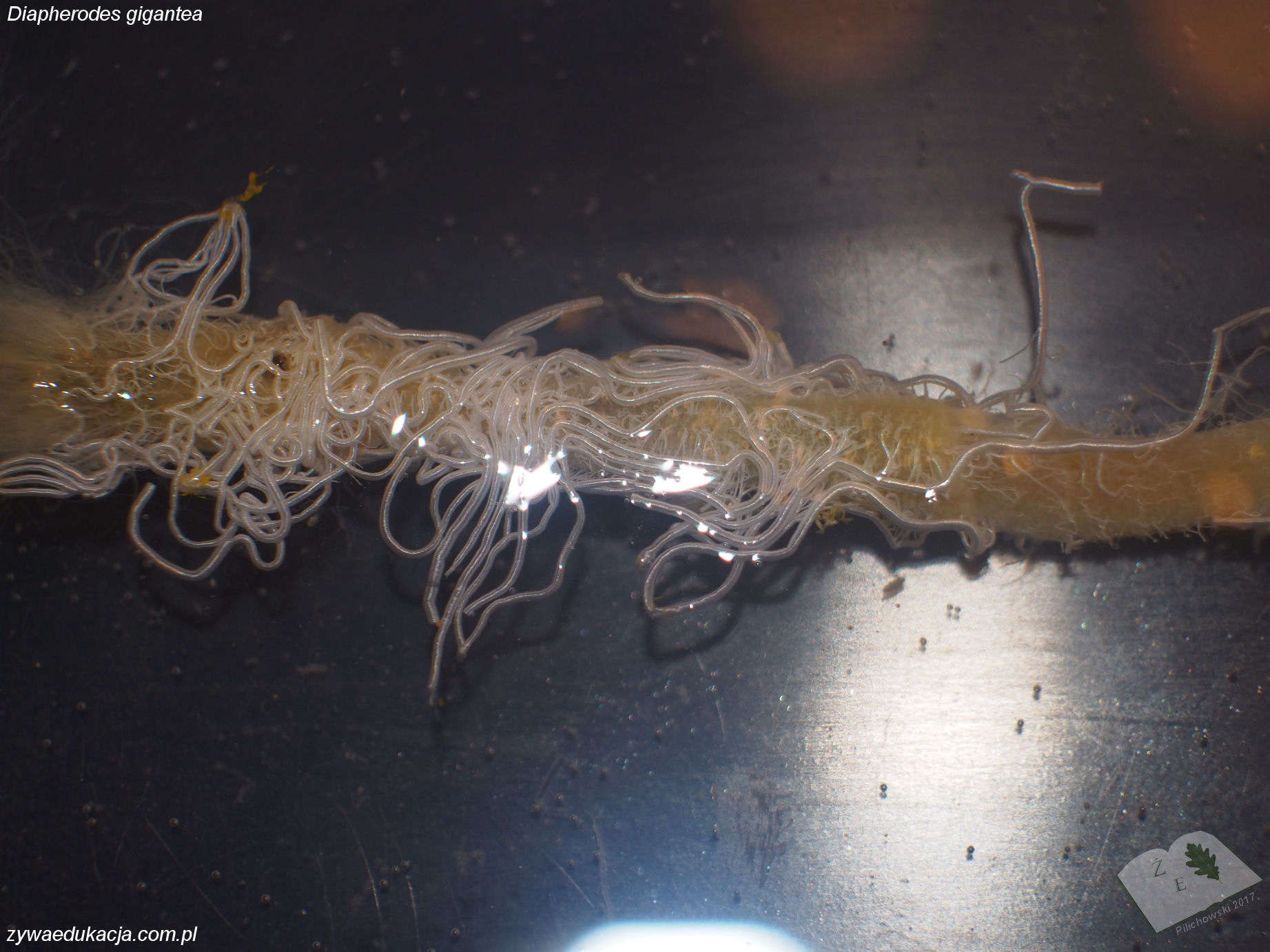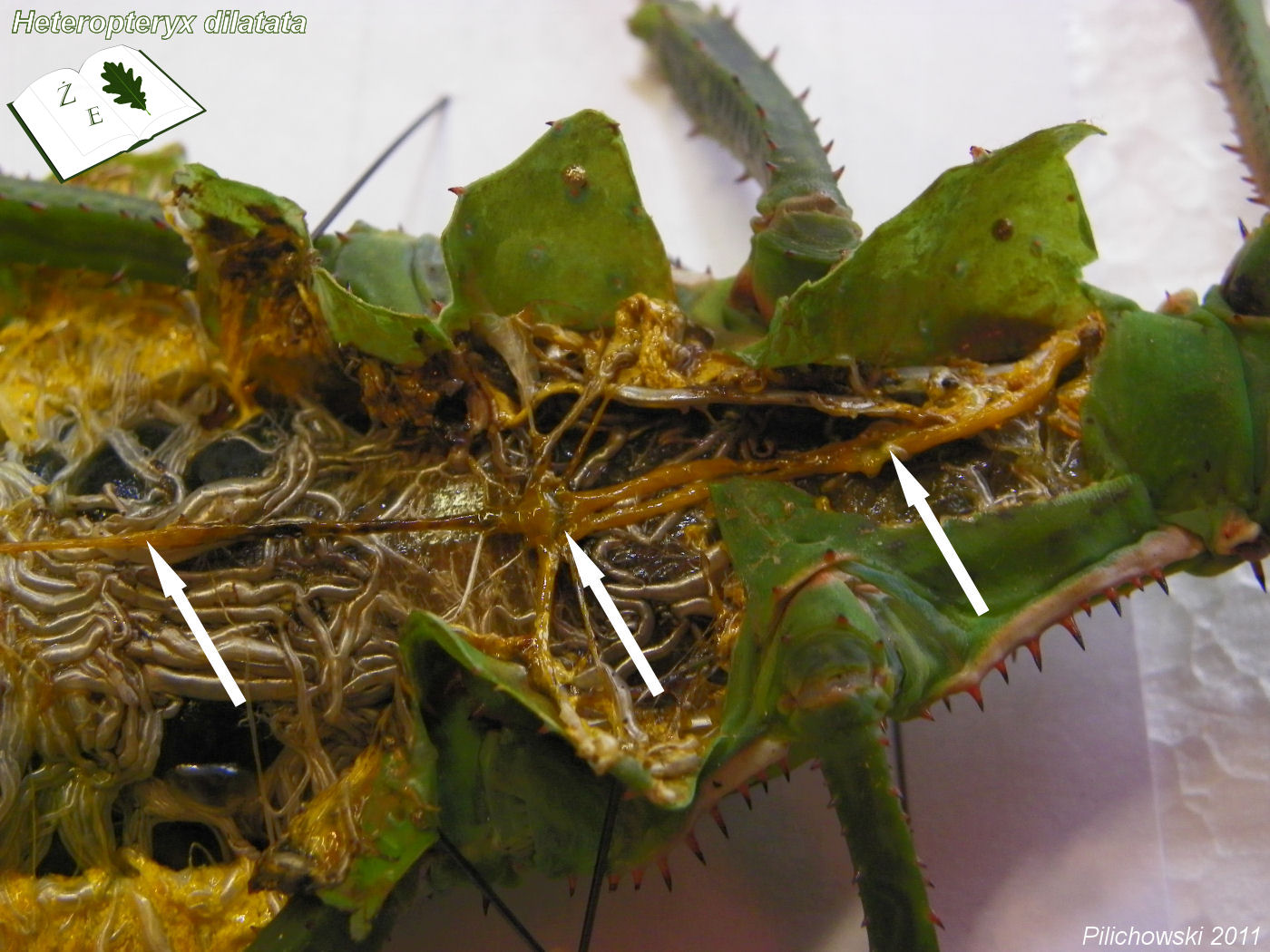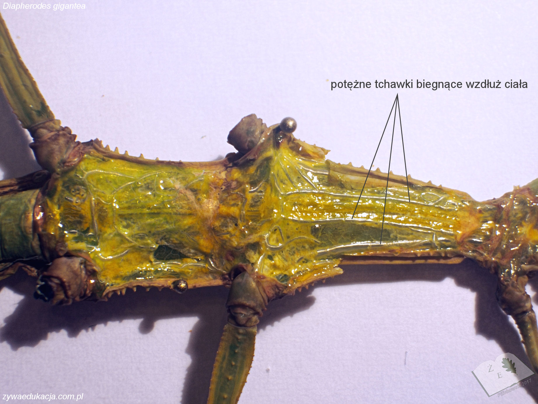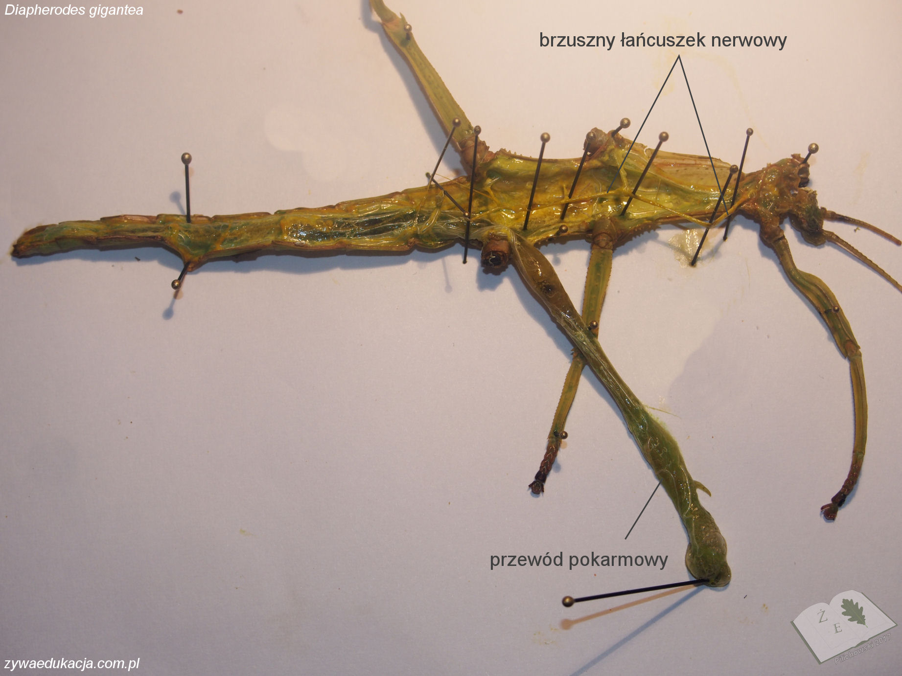 A tu straszyk olbrzymi, samica. Stare zdjęcie, ale u niej brzuszny łańcuszek nerwowy jest znacznie wyraźniejszy.