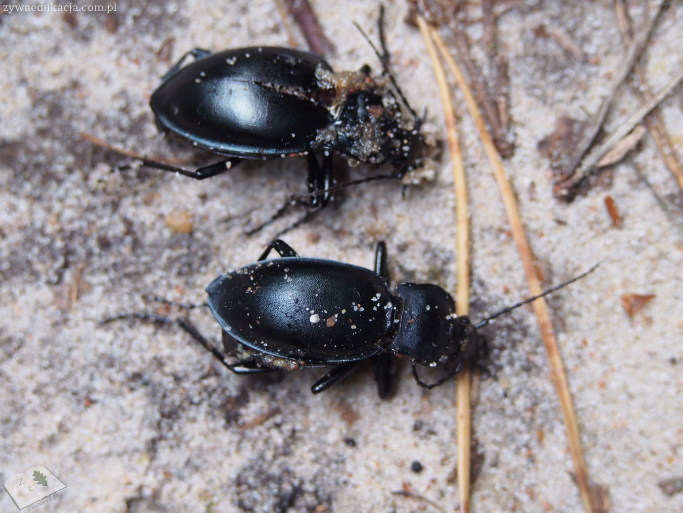 Na co bym chciał jednak zwrócić jeszcze uwagę to dwie sprawy. Po pierwsze, zrozumiałe, że ciężko wyrobić nawyk spoglądania pod nogi w lesie. Szczególnie trudno o niego u biegaczy, kolarzy czy piechurów. Niemniej spójrzcie na dół, może dzięki temu część żuków i biegaczy (bo to o nie głównie chodzi) przeżyją swe niefortunne wyjście na ścieżkę. Szkoda było patrzeć na parę pięknych biegaczy, która spotkała się w "miłosnych" celach, a te przyniosły im jedynie śmierć. I druga sprawa. Brzeg jeziora, jak i dalsze fragmenty lasu wokół Jeziora Lutomskiego są niekiedy makabrycznie zaśmiecone. Głównie artykułami wędkarskimi, wśród których znajdują się szczególnie niebezpieczne dla ptaków żyłki wędkarskie. Z kolei przy młodych nasadzeniach leśnych znaleźć można kawałki pociętego sznurka czy ogólnie w lesie nie trudno o butelki zarówno plastikowe i szklane. Szkoda, że ludzie nie rozumieją problemu zanieczyszczania. Takie butelki, a dalej foliówki, opakowania itd. to śmiertelna pułapka dla licznych bezkręgowców oraz drobnych kręgowców, a nawet ostatni posiłek dla np. ptaków czy gryzoni... Niestety niezależnie od miejsca problem jest ten sam.