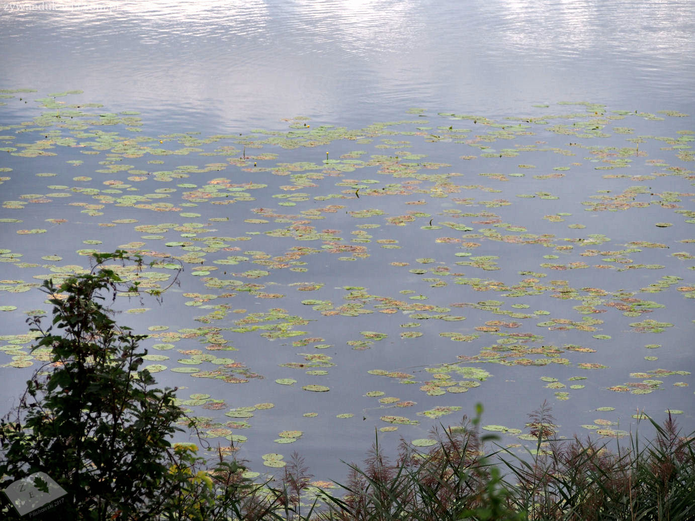 W przeciwieństwie do pierwszych dni udało się zobaczyć trochę gadów (choć najpospolitszych - zwinki i zaskrońce), jakieś żabki uciekały szybko przede mną do wody chowając się wśród wodnej roślinności przy brzegu, z kolei wyprawa na użytek ekologiczny spełzła na niczym, gdyż straciłem orientację wjeżdżając komuś na teren prywatny (pole)... Nie udało się zatem ujrzeć jaskółek brzegówek. Tafla Jeziora Lutomskiego jest plamami pokryta talerzowatymi liśćmi grążela żółtego, a w pobliżu brzegu powierzchnię przebijają liście strzałki wodnej.